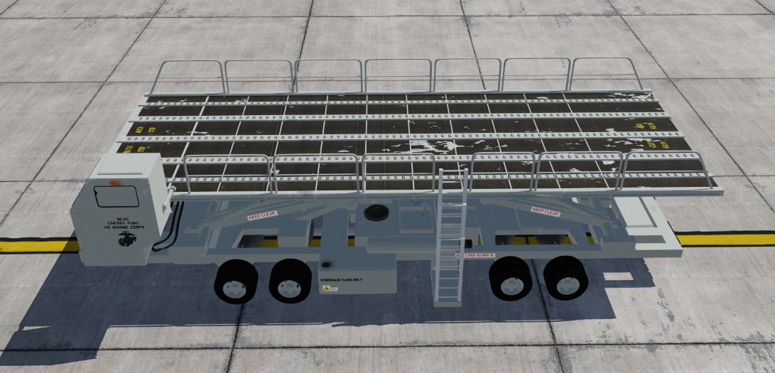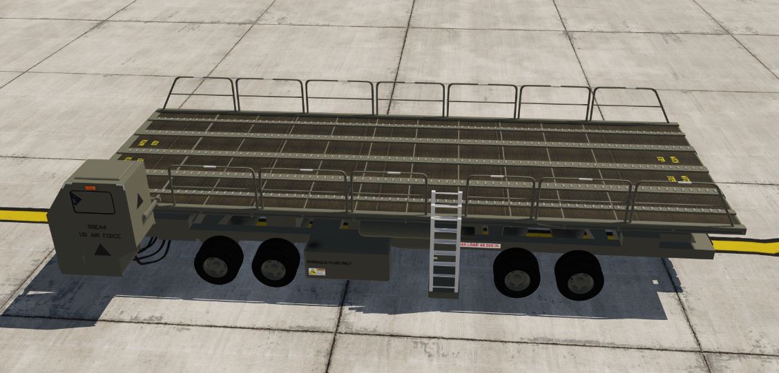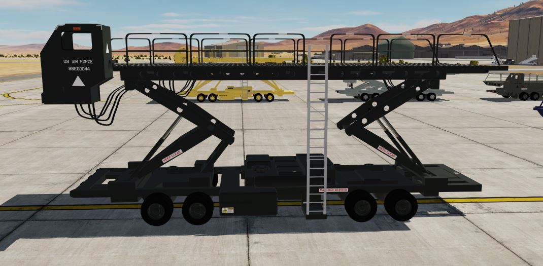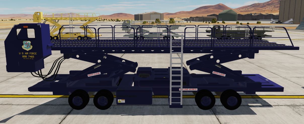 Six liveries of the iconic MHE used to load military transport aircraft worldwide.  Low (C-130), Mid (KC-135), and Up (KC-10) preset lift heights.
