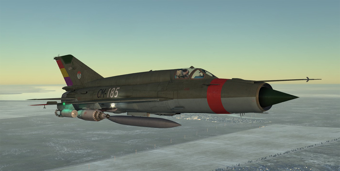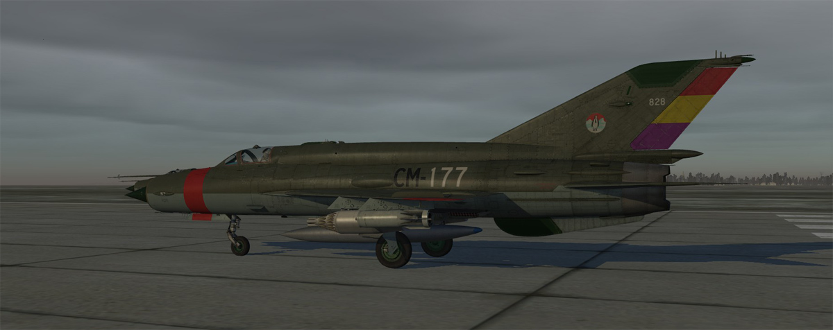 Fictional repaint of the MiG-21Bis in Third squadron (Seis Doble) of the 21 Group of the Spanish Republican Air Force (FARE) livery. A mixed pre-war roundel and red wartime marks in this fictional post-war livery. Based on I-16 Mosca registered as CM-249 of Jose Maria Bravo. It uses a 3-digit bort number.
