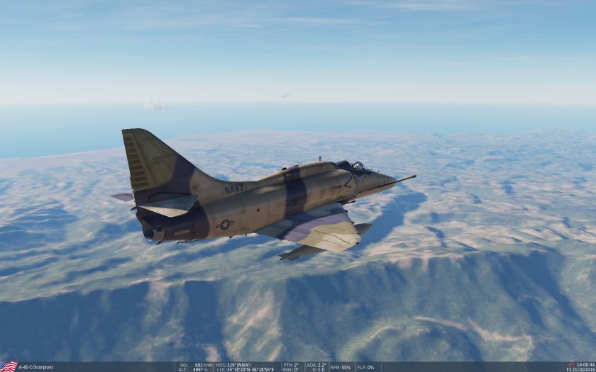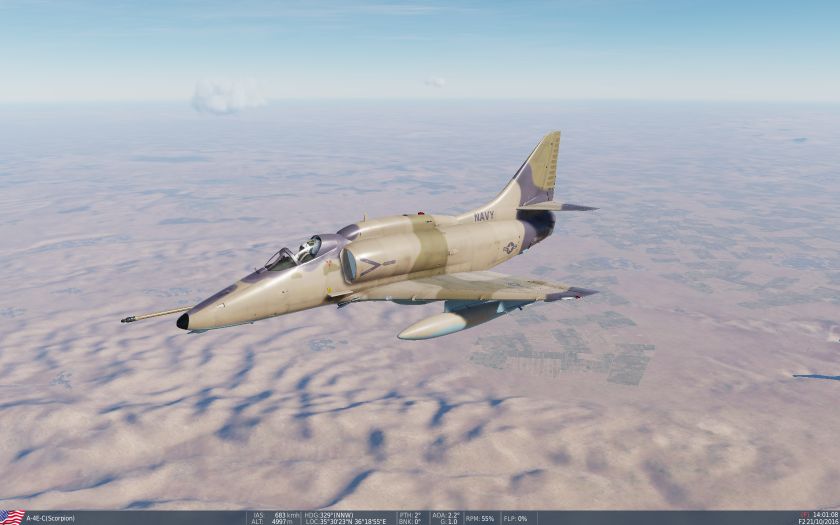 Fictional aggressor USN Top Gun desert skin for the A-4E Skyhawk (A-4E Community Mod).