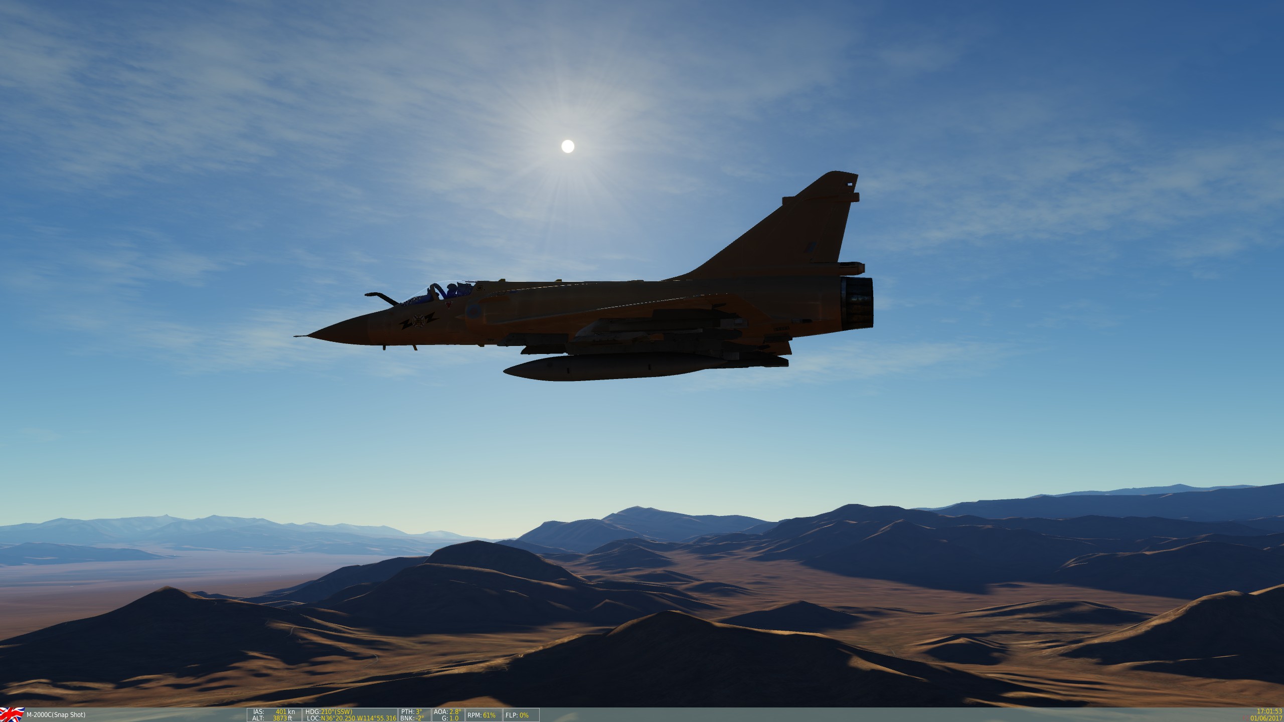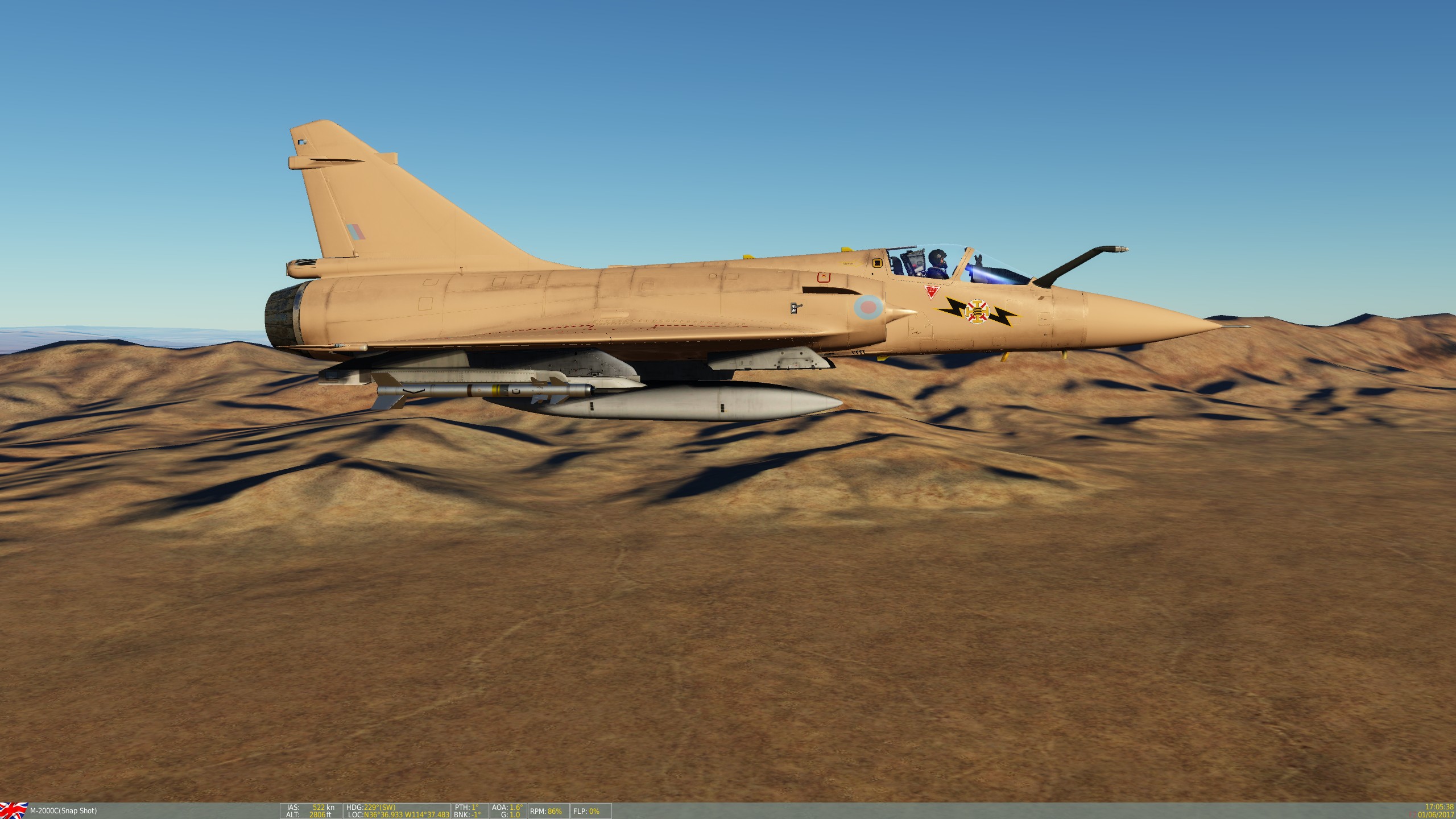 Similar to the original Mission not impossible. This time we use the Mirage 2000C. Eliminate an armoured insurgent group, holding a bridge, in a valley. They are defended by SA13 and AAA. Weather is low visibility, with fog at 1200'. Cloud deck is 6,500'.
