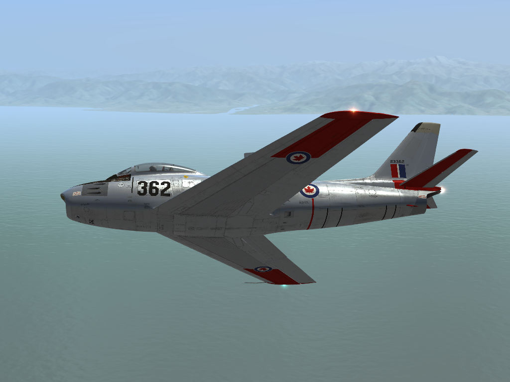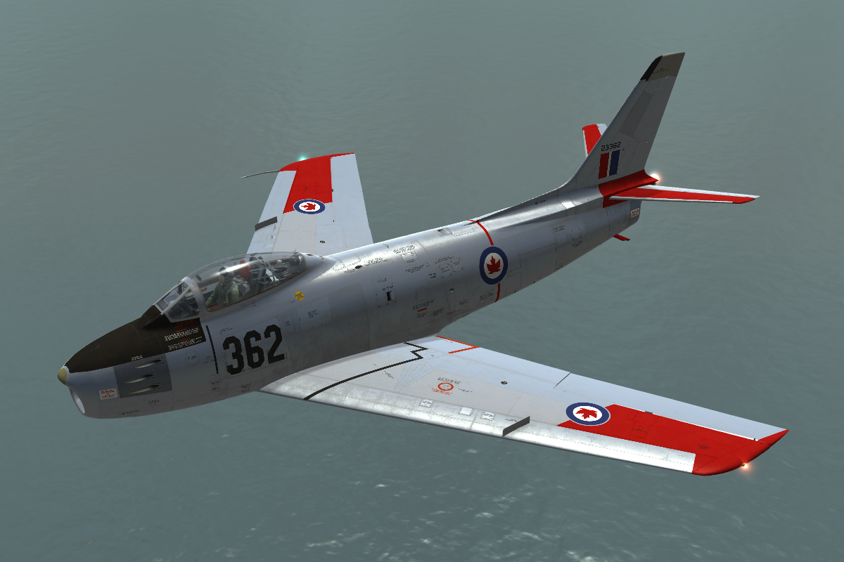 Skins included are Sabre Mk.5 23066 of the 1960 team, flown by team lead S/L Fern Villeneuve, based at RCAF Station Chatham, New Brunswick, Canada, and Sabre Mk.6 23651 as it appeared in the 1963 season. This aircraft is now preserved on display at the Canadian Warplane Heritage Museum, Hamilton, Ontario, Canada.