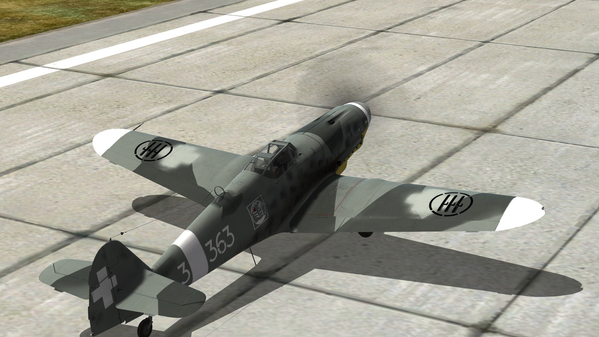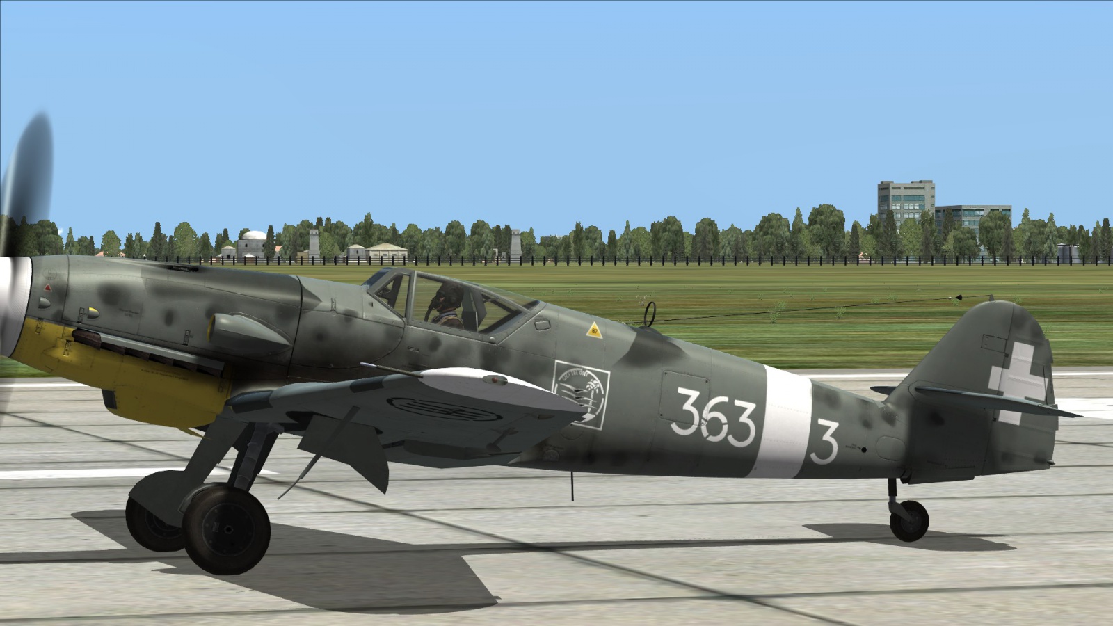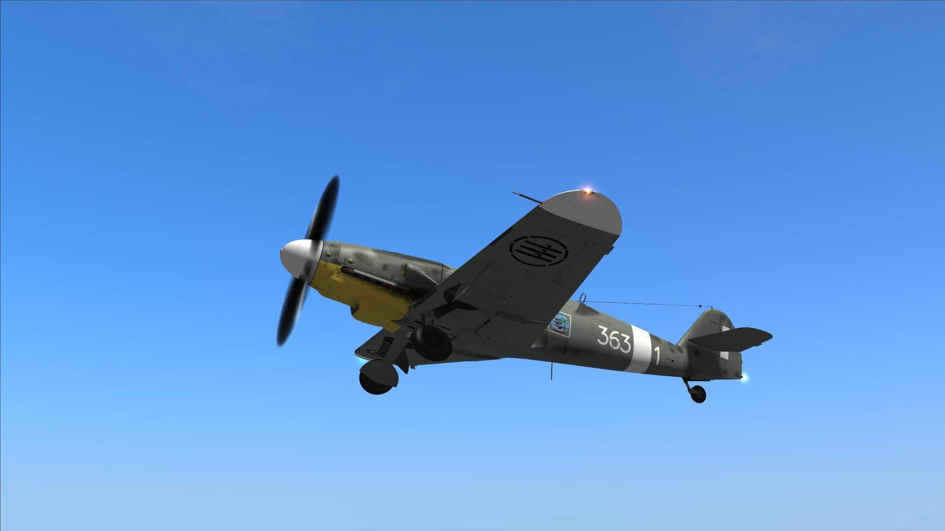 This is a skin job inspired by the Italian Republican Air Force the Regia Aeronautica on the BF 109 K-4 2° Gruppo Caccia Gigi Tre Osei