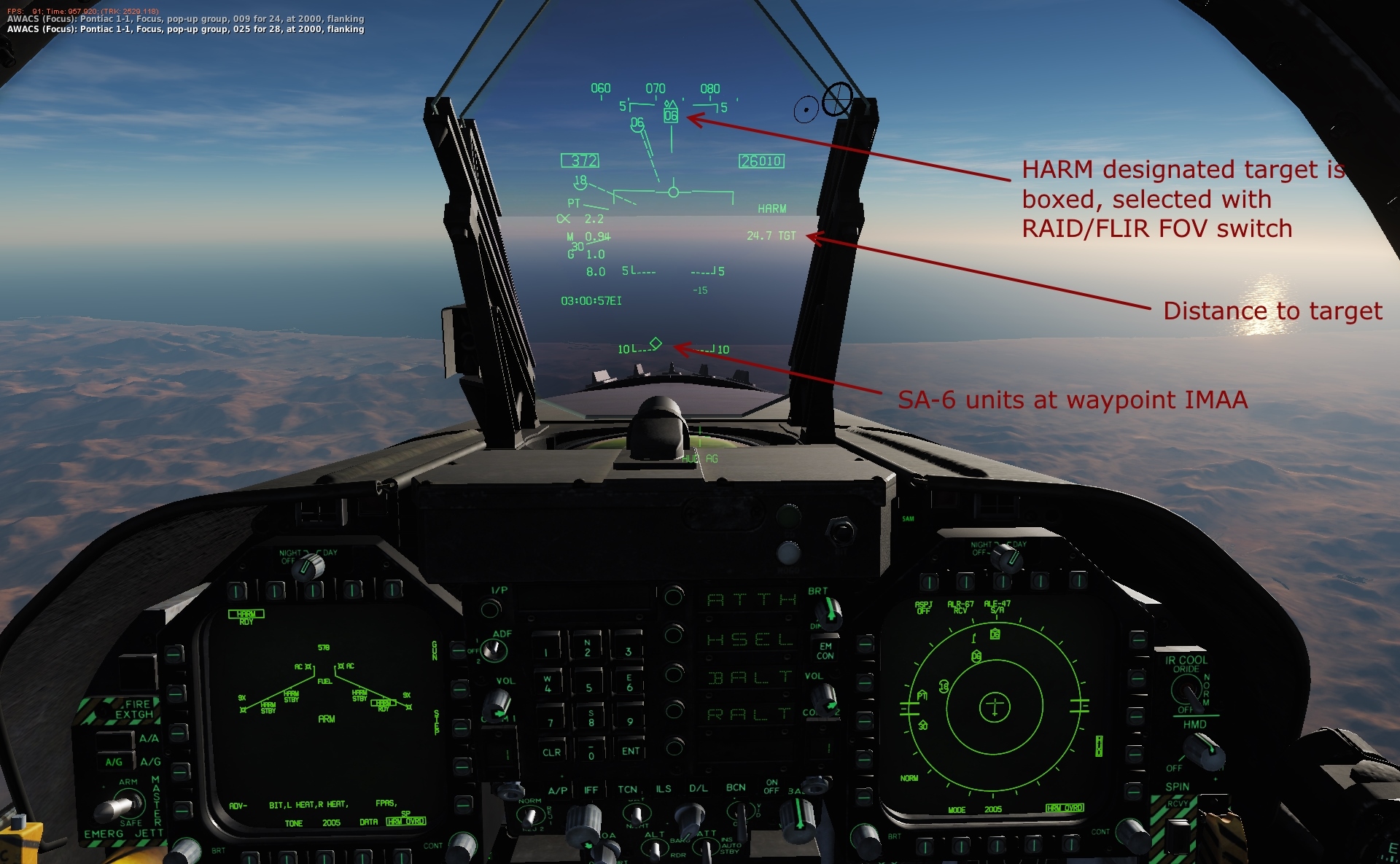 In this mission you can practice using the HARM AGM-88C against SAM radars. The default loadout is HARM AGM88Cs however you can change weapons loadout in the mission editor to whatever you like.