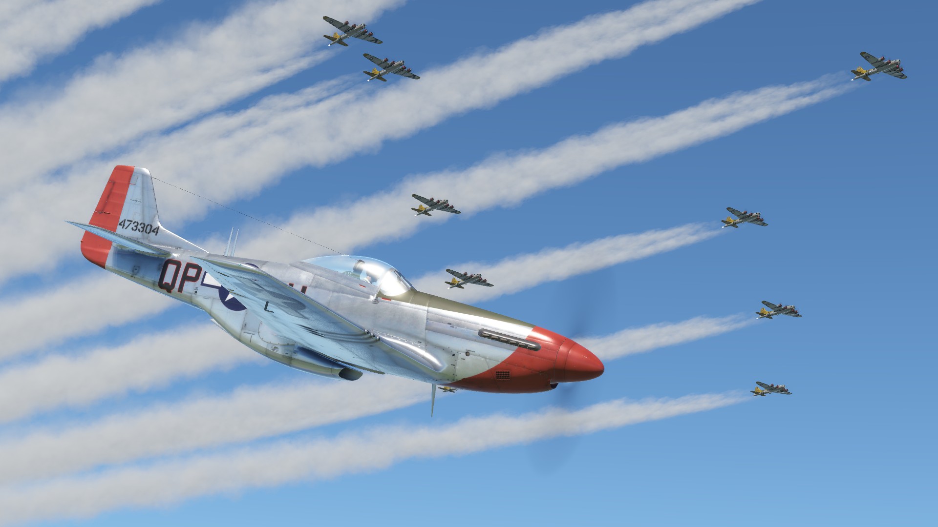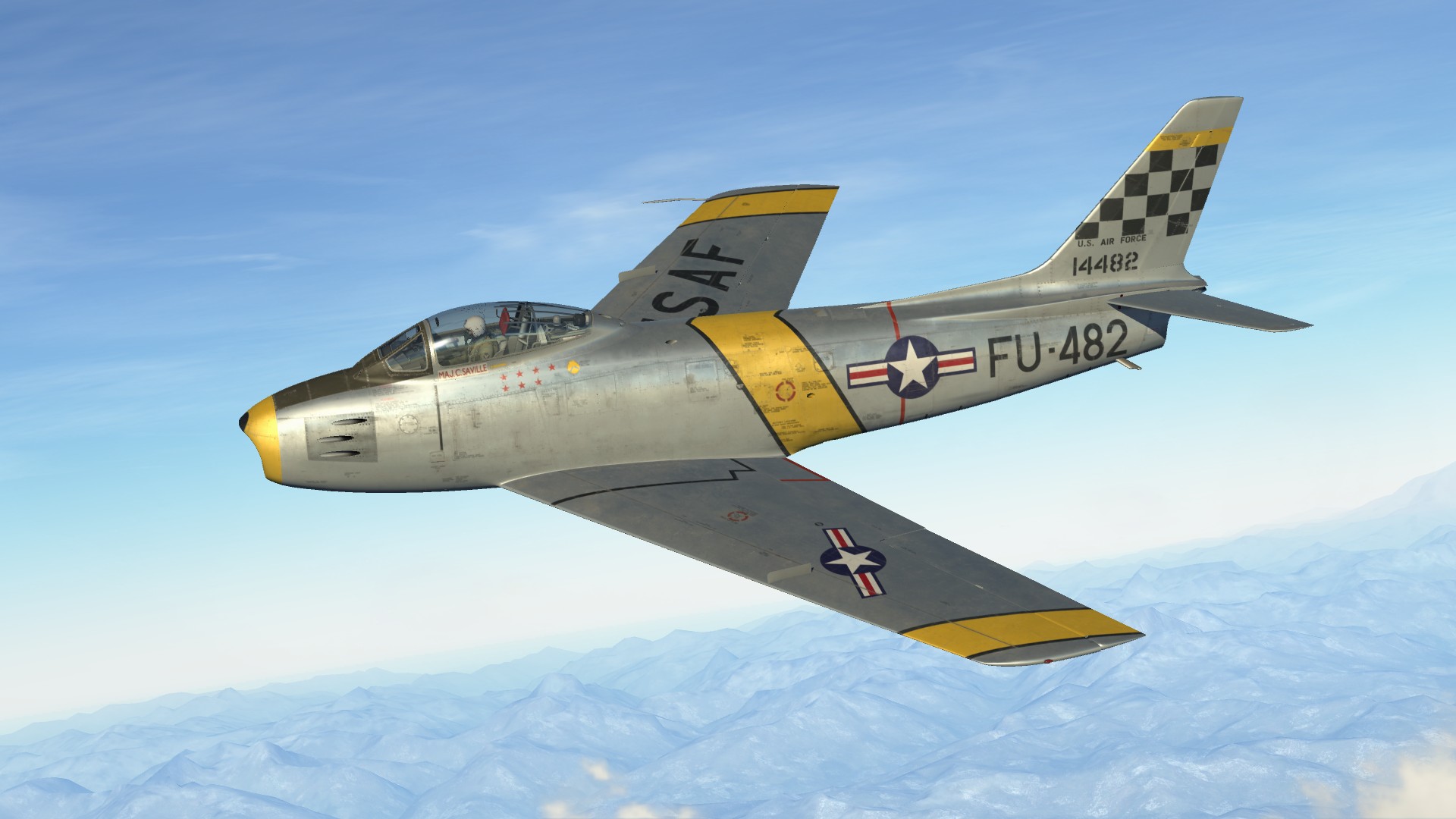 P-51 D Mustang 'The Count' flown by Lt.Carroll W.Ofshun, 363rd FS, 357th FG. WW2 era pilot with appropriate patches included. Based on Wiplash's template.