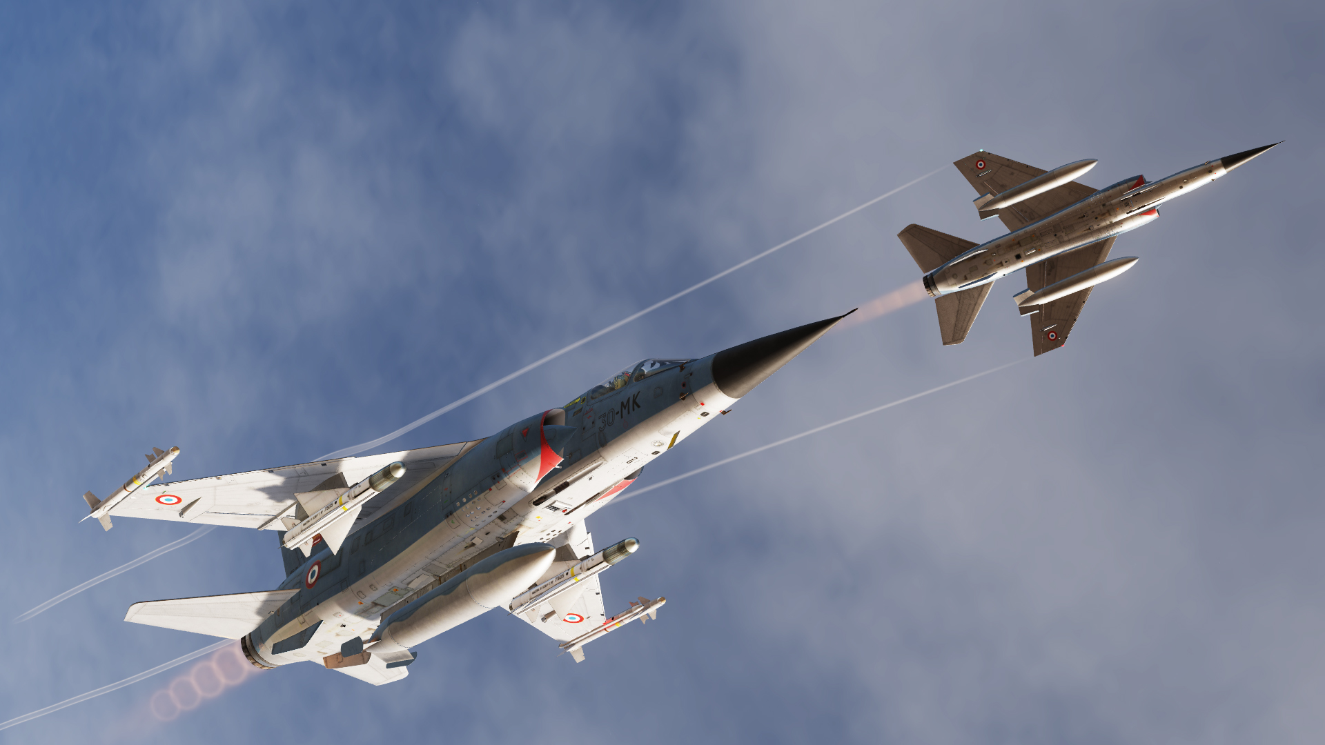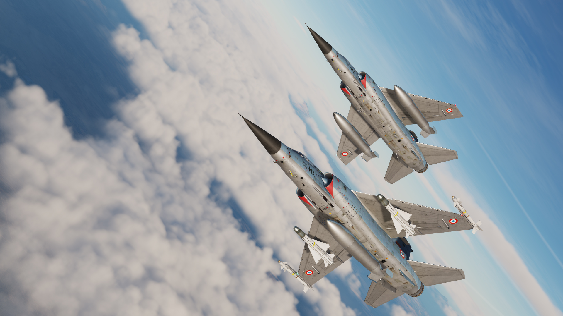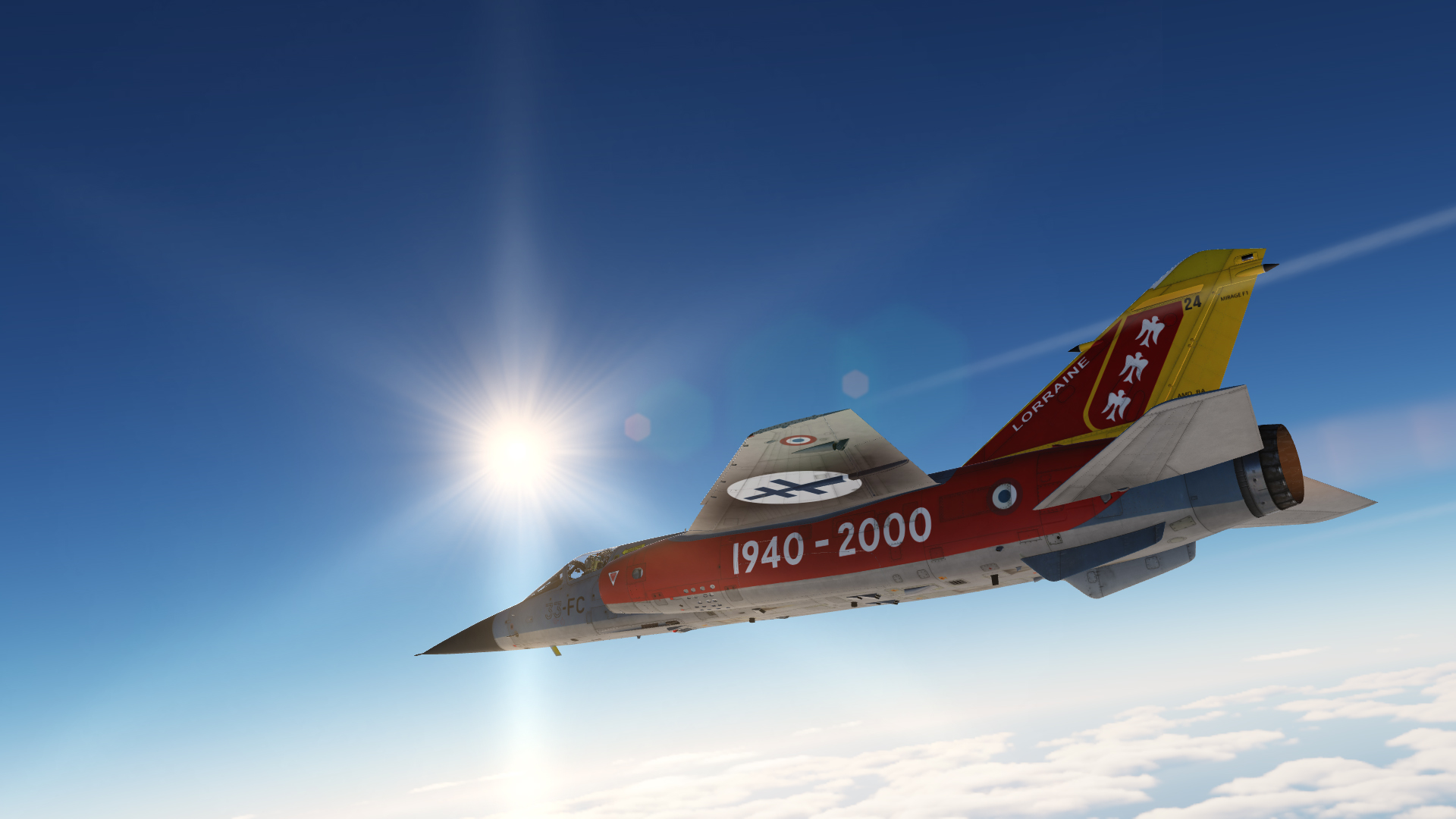 These skins aim at representing 2 Mirage F1C / C200 in service with EC 4/30 Vexin in the 1980's - 90's as accurately as possible. For use with Aerges Mirage F1 CE or EE.