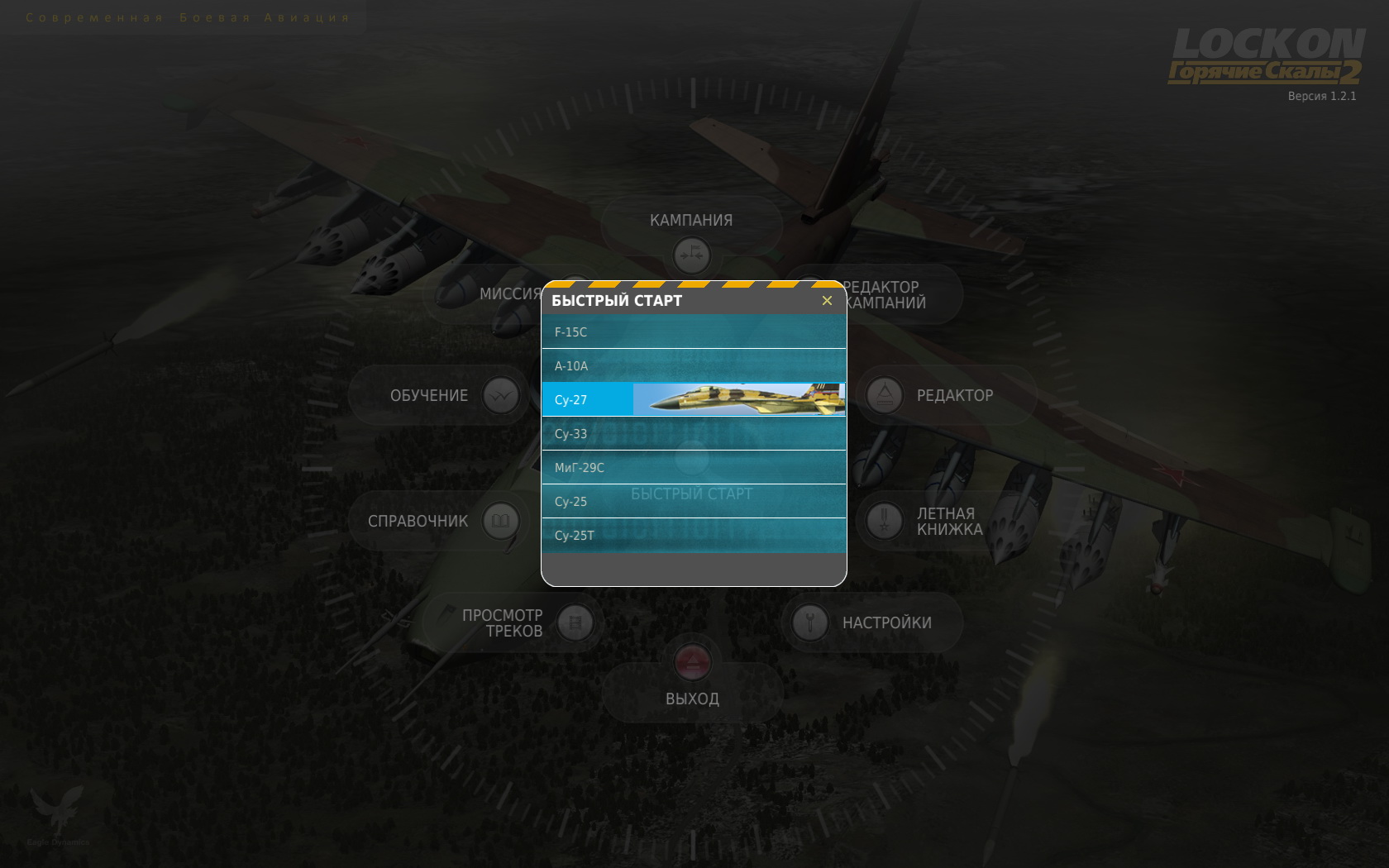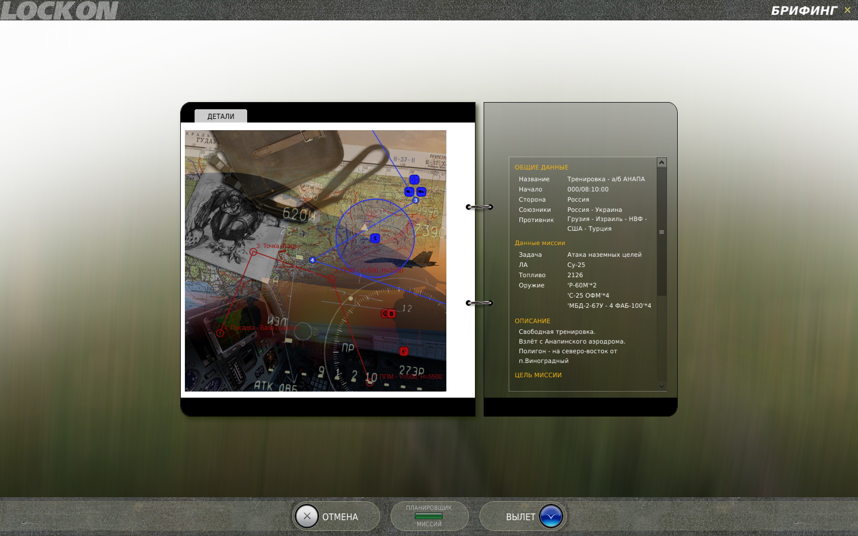 Пакет файлов, заменяющий фоновые картинки Главного меню, Меню "Быстрый старт", загрузочных экранов загрузки/выхода из миссии, брифинга/дебрифинга, для русской локализации игры - LockOn Flaming Cliffs 2 v.1.2.1
