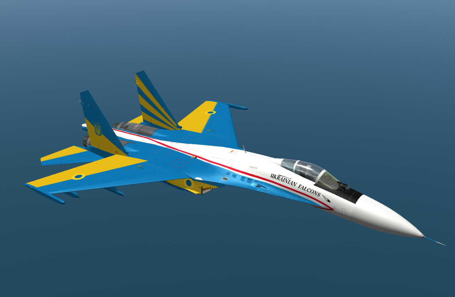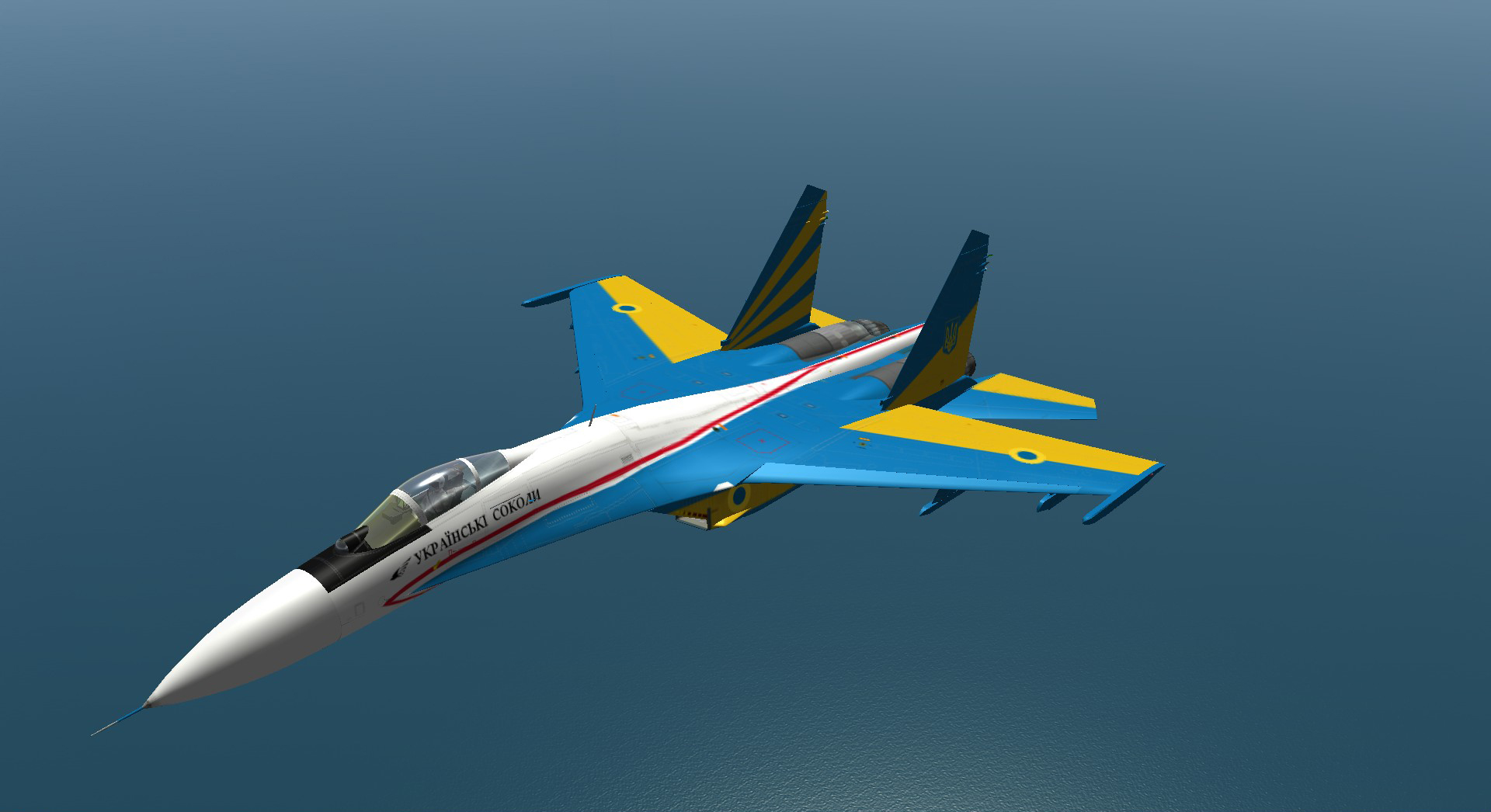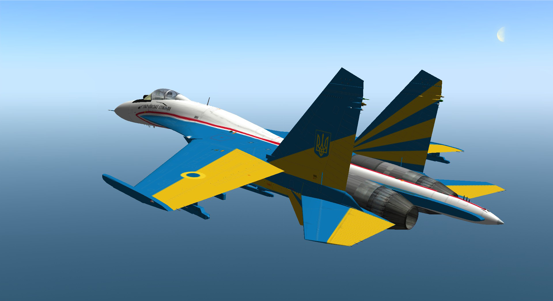МіГ-29С пілотажної групи "Українські соколи". Цей скин був останнім перед розпуском групи в 2002 році. Група налічує шість літаків з бортовими номерами 101, 102, 103, 104, 105 та 106. Путь встановлення у архівній теці.