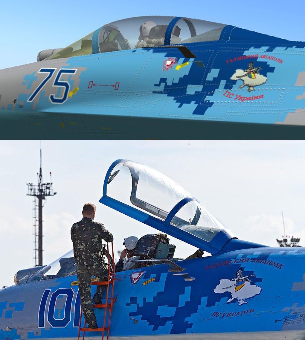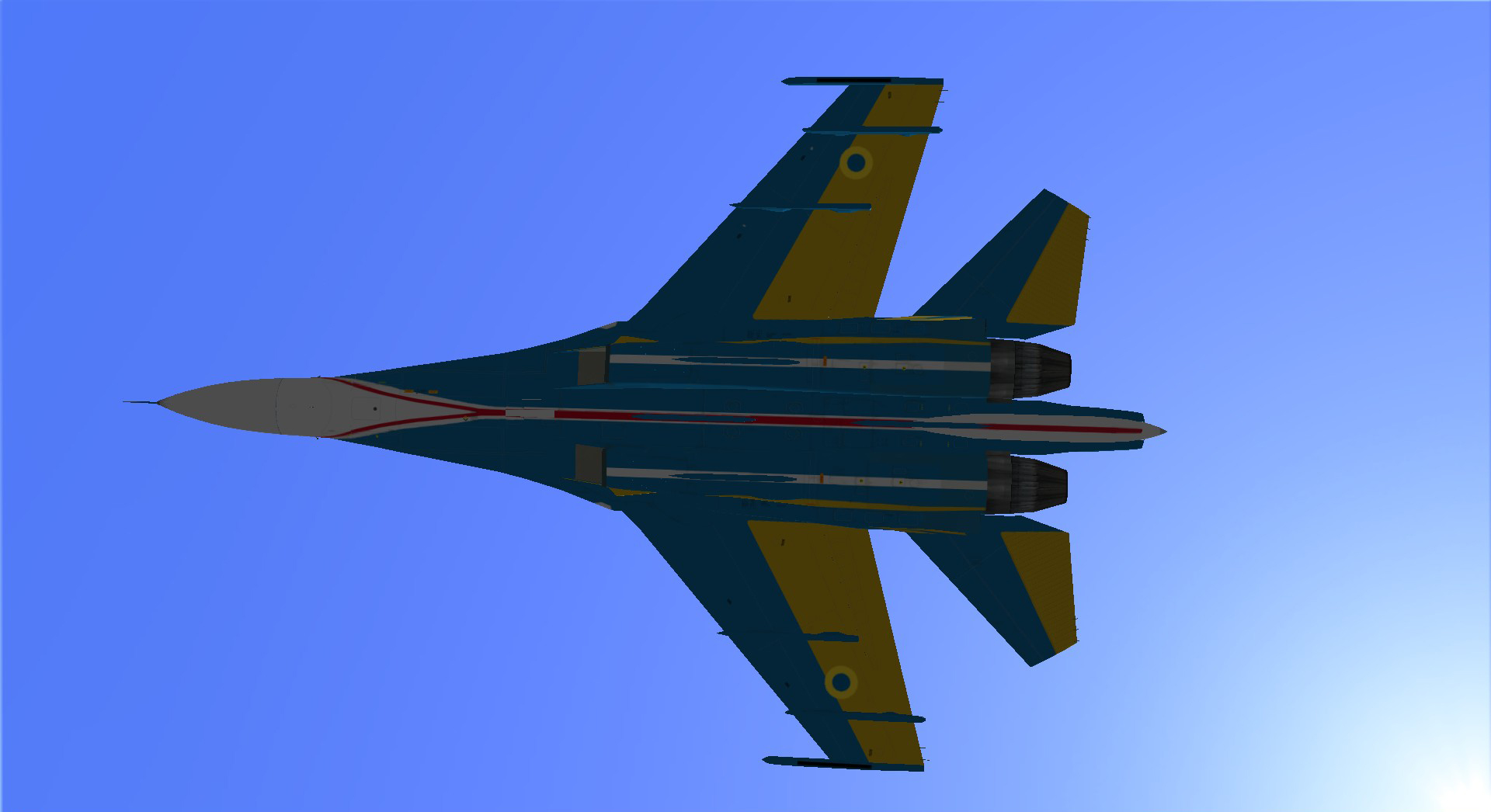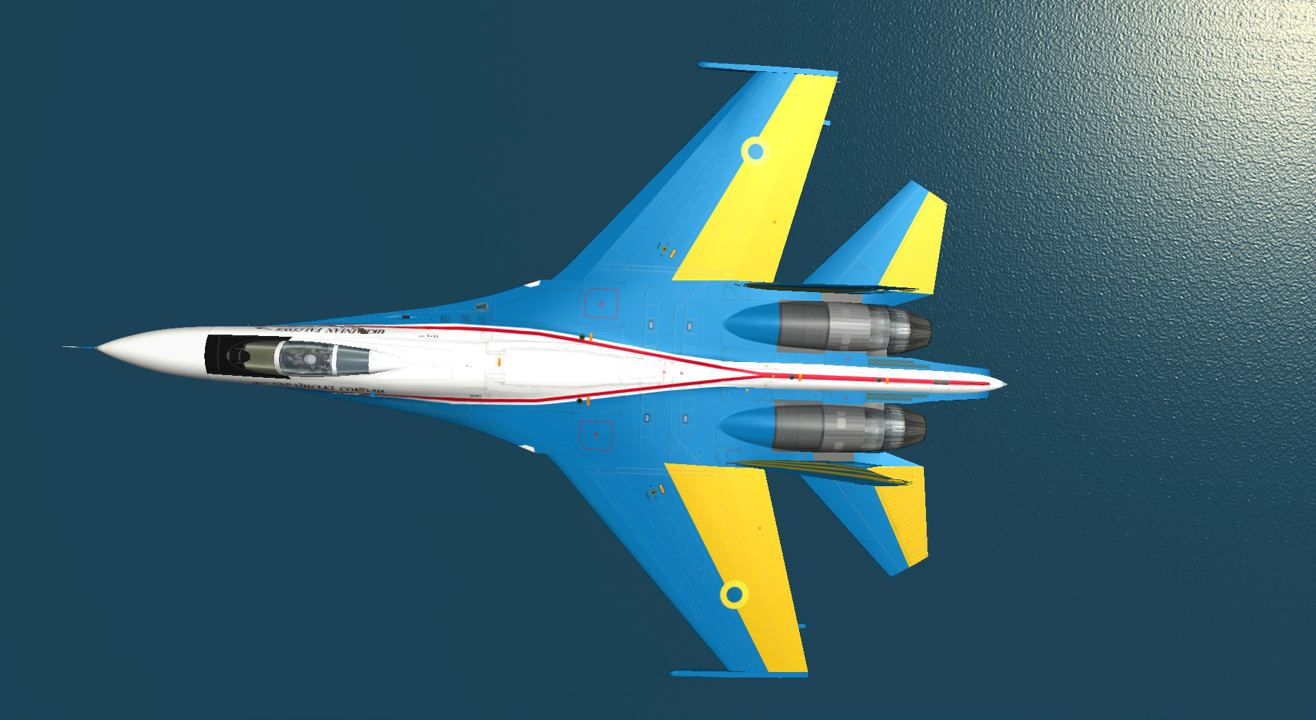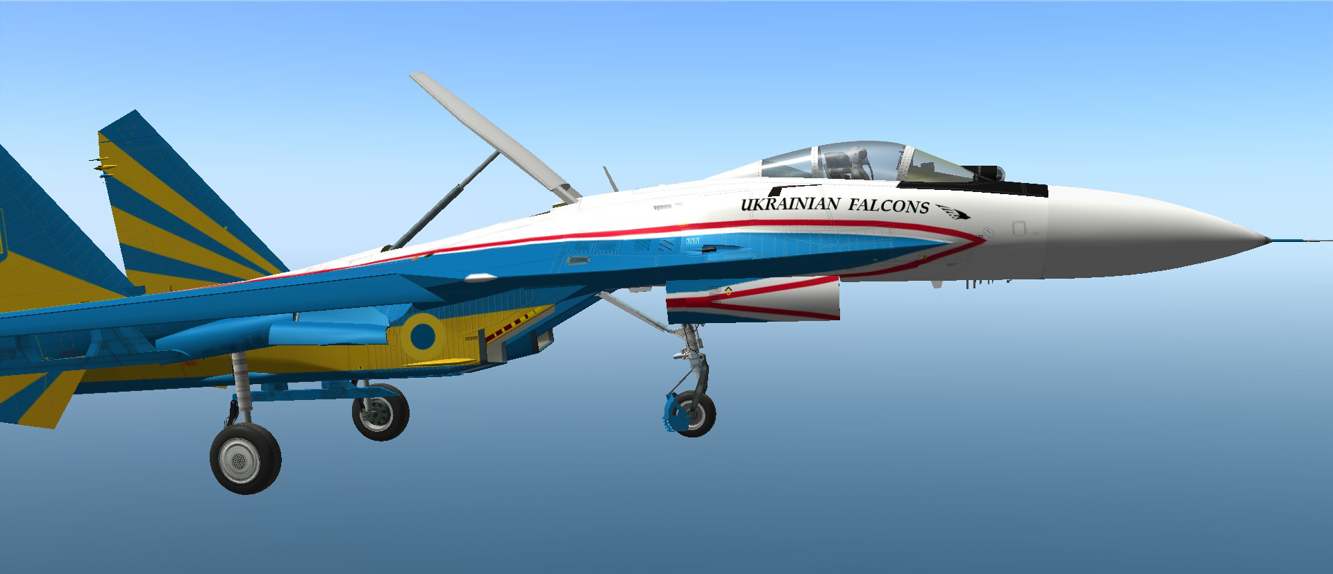 МіГ-29С пілотажної групи "Українські соколи". Цей скин був останнім перед розпуском групи в 2002 році. Група налічує шість літаків з бортовими номерами 101, 102, 103, 104, 105 та 106. Путь встановлення у архівній теці.
