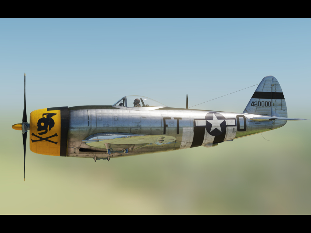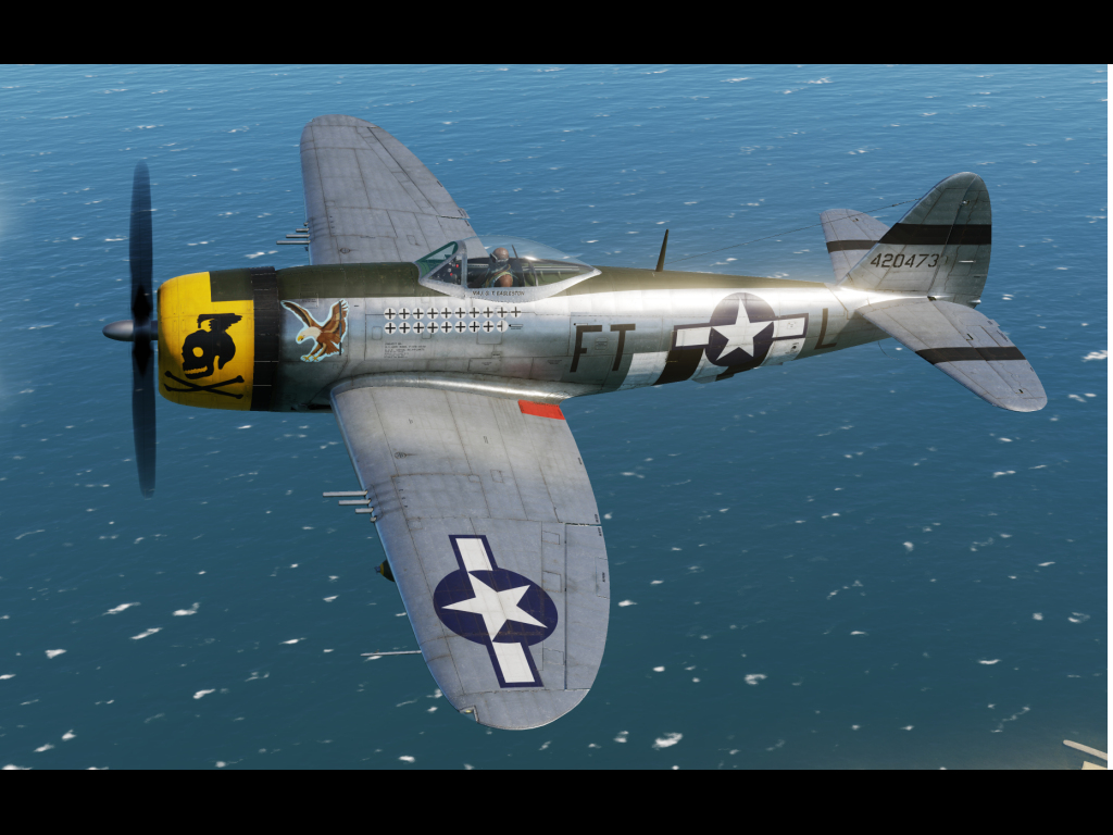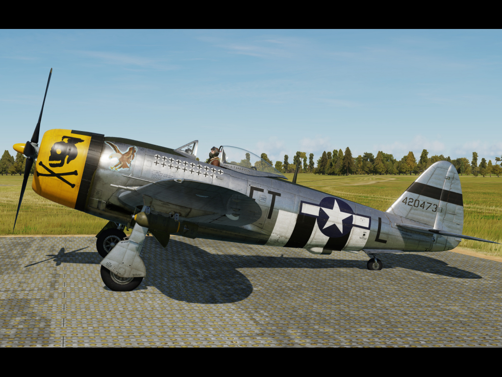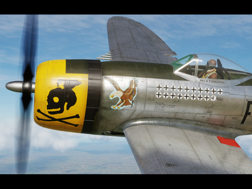 It carries the code of the 353rd Fighter Squadron which was "F T". The sim will then apply the individual code letter/serial number from its default settings to the rear fuselage and tail.