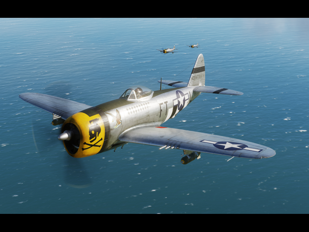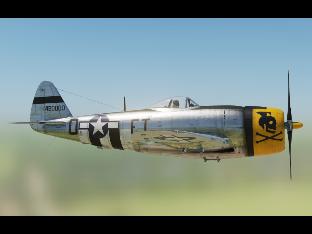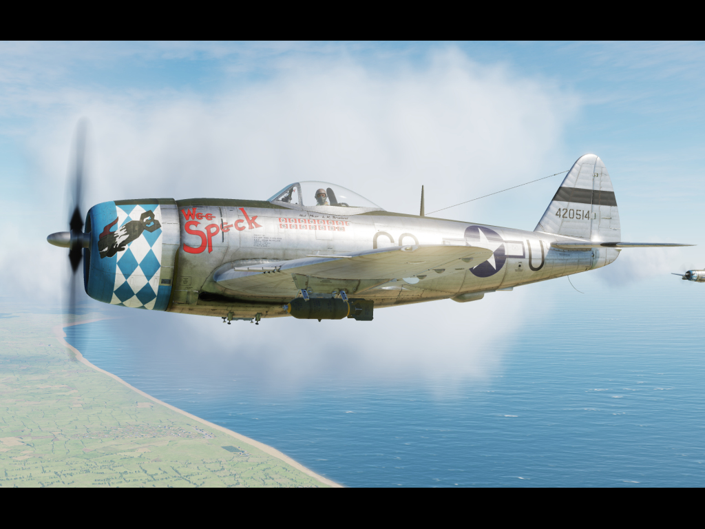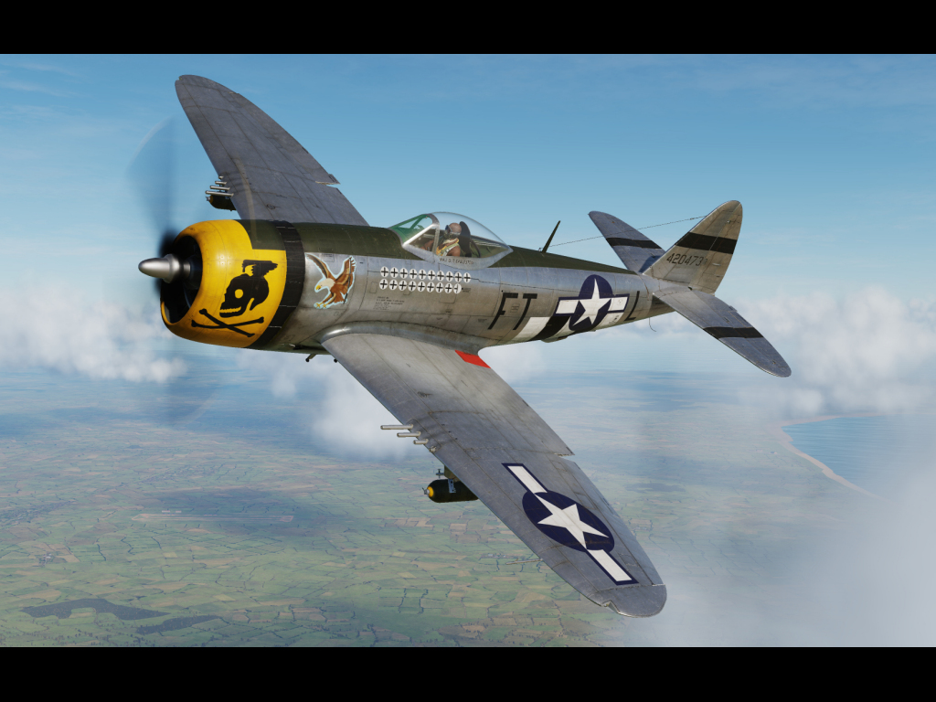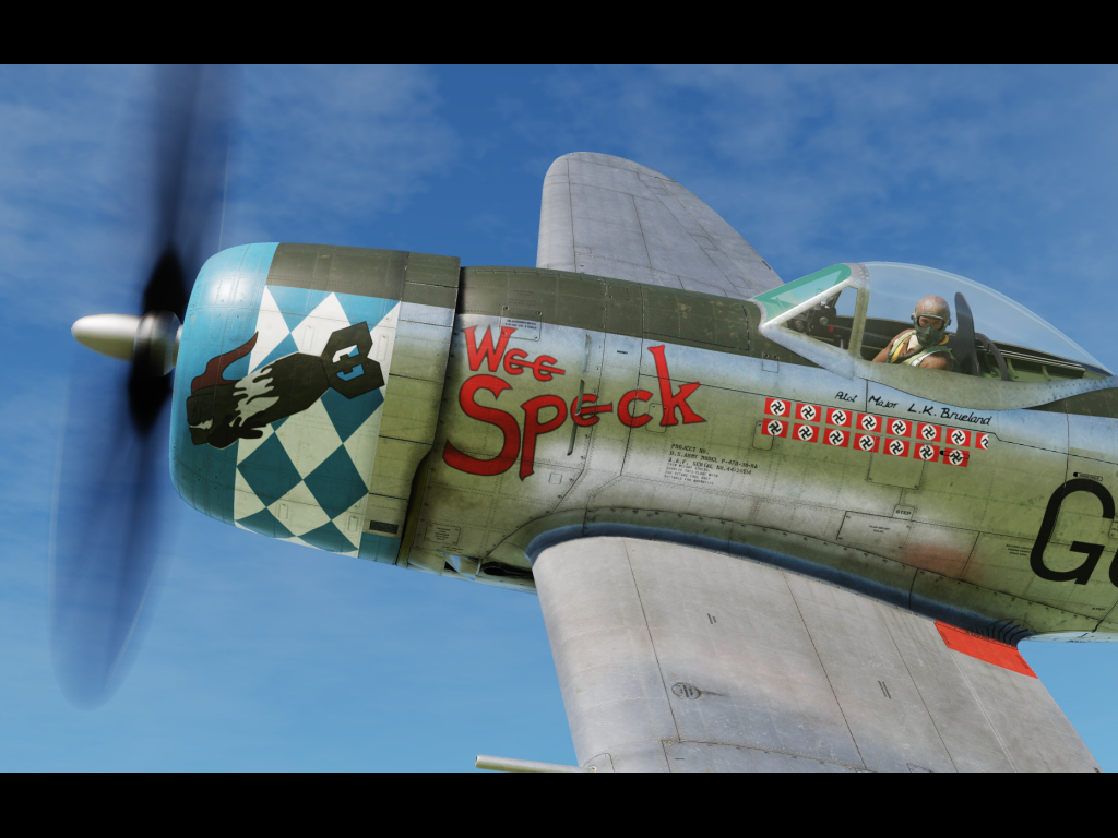 It carries the code of the 353rd Fighter Squadron which was "F T". The sim will then apply the individual code letter/serial number from its default settings to the rear fuselage and tail.