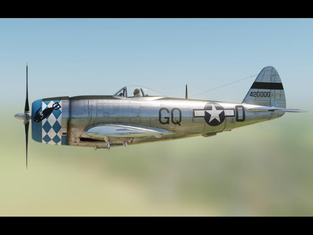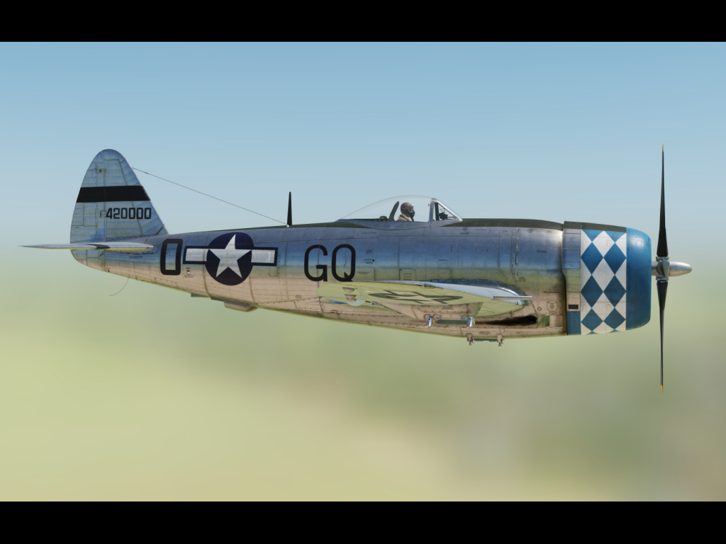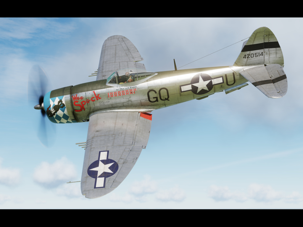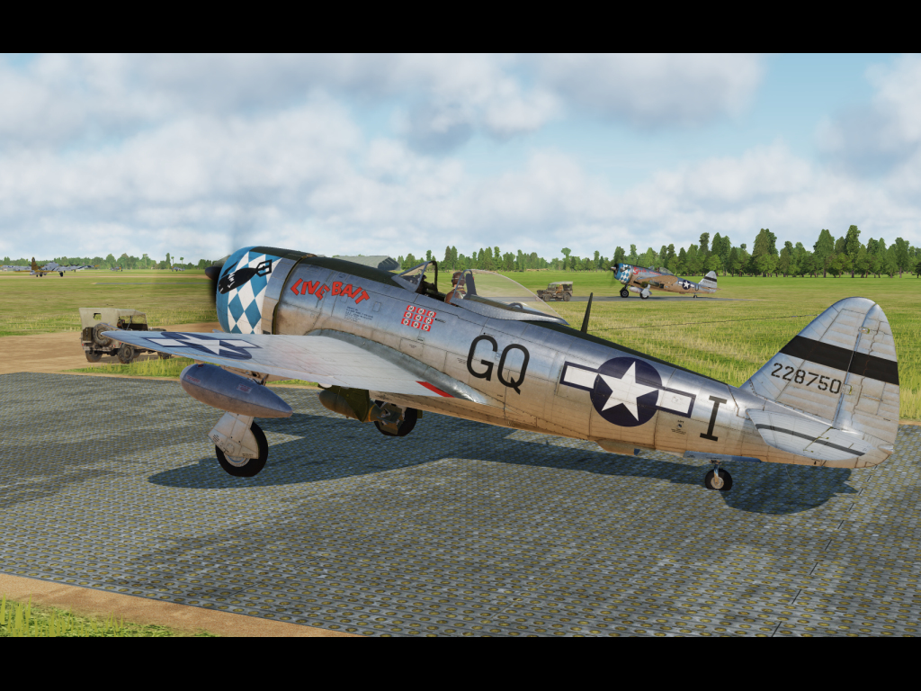 It carries the code of the 355th Fighter Squadron which was "GQ". The sim will then apply the individual code letter/serial number from its default settings to the rear fuselage and tail.