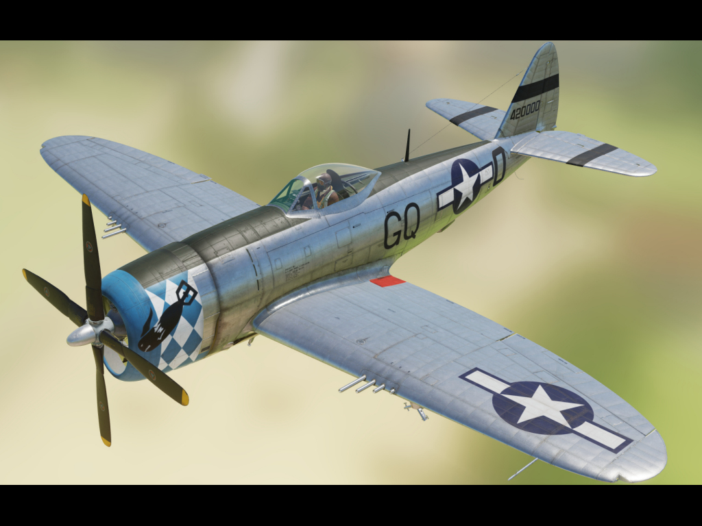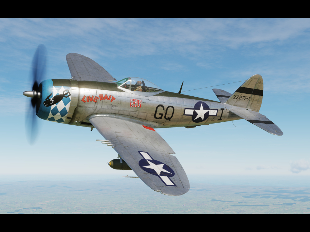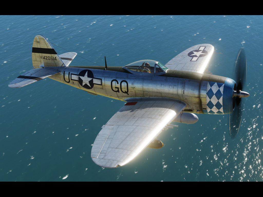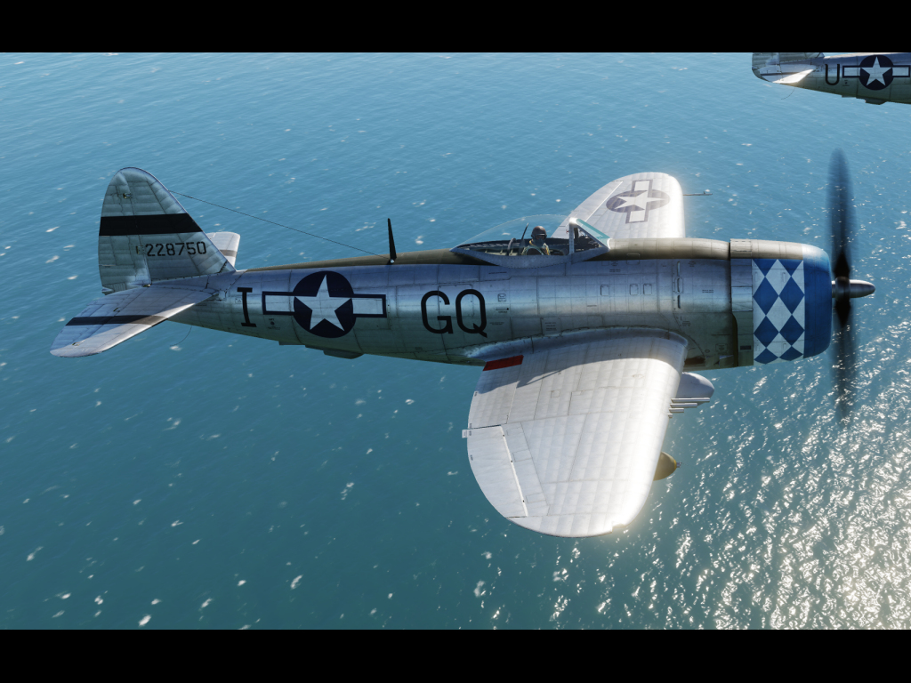 It carries the code of the 355th Fighter Squadron which was "GQ". The sim will then apply the individual code letter/serial number from its default settings to the rear fuselage and tail.