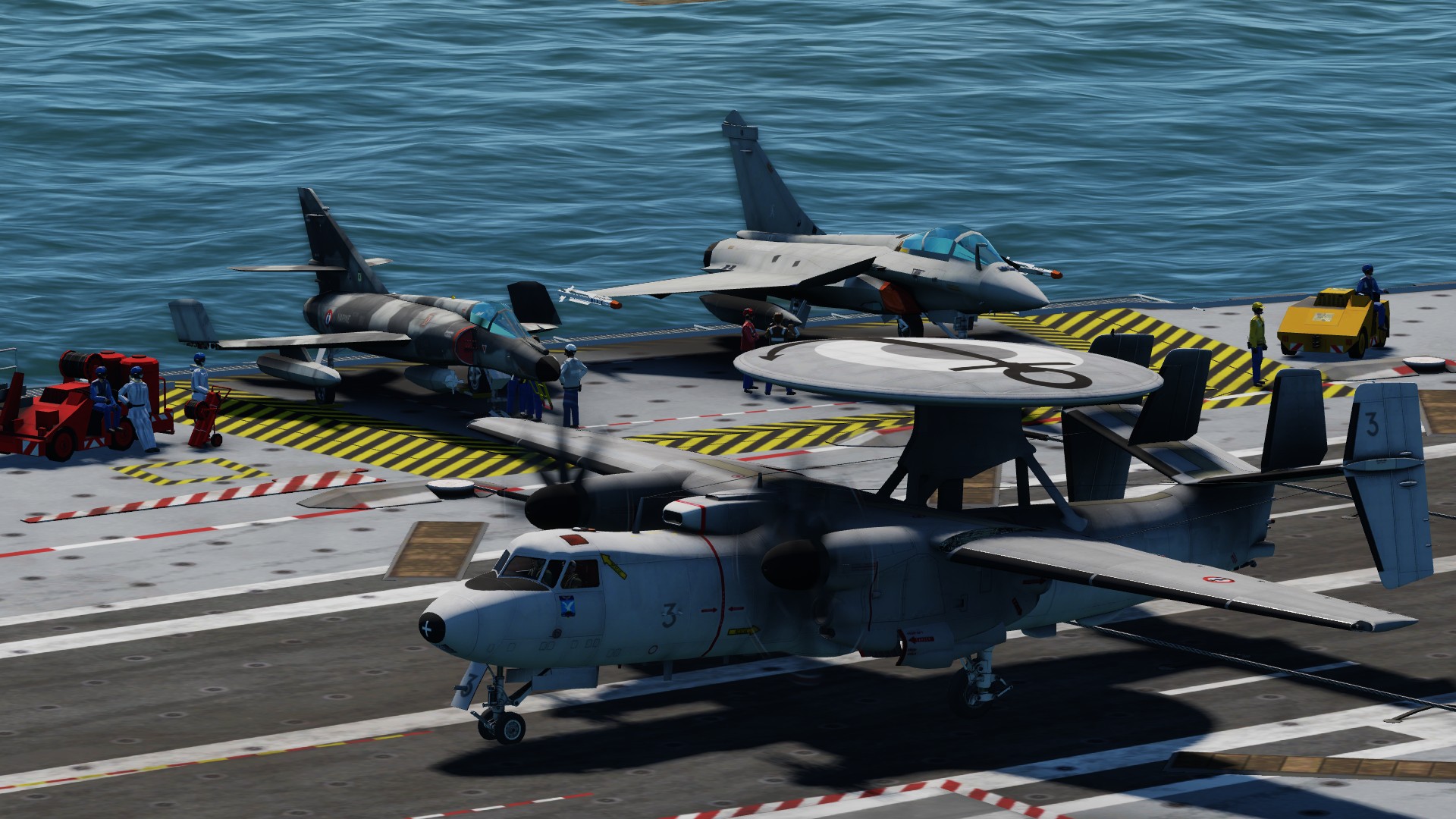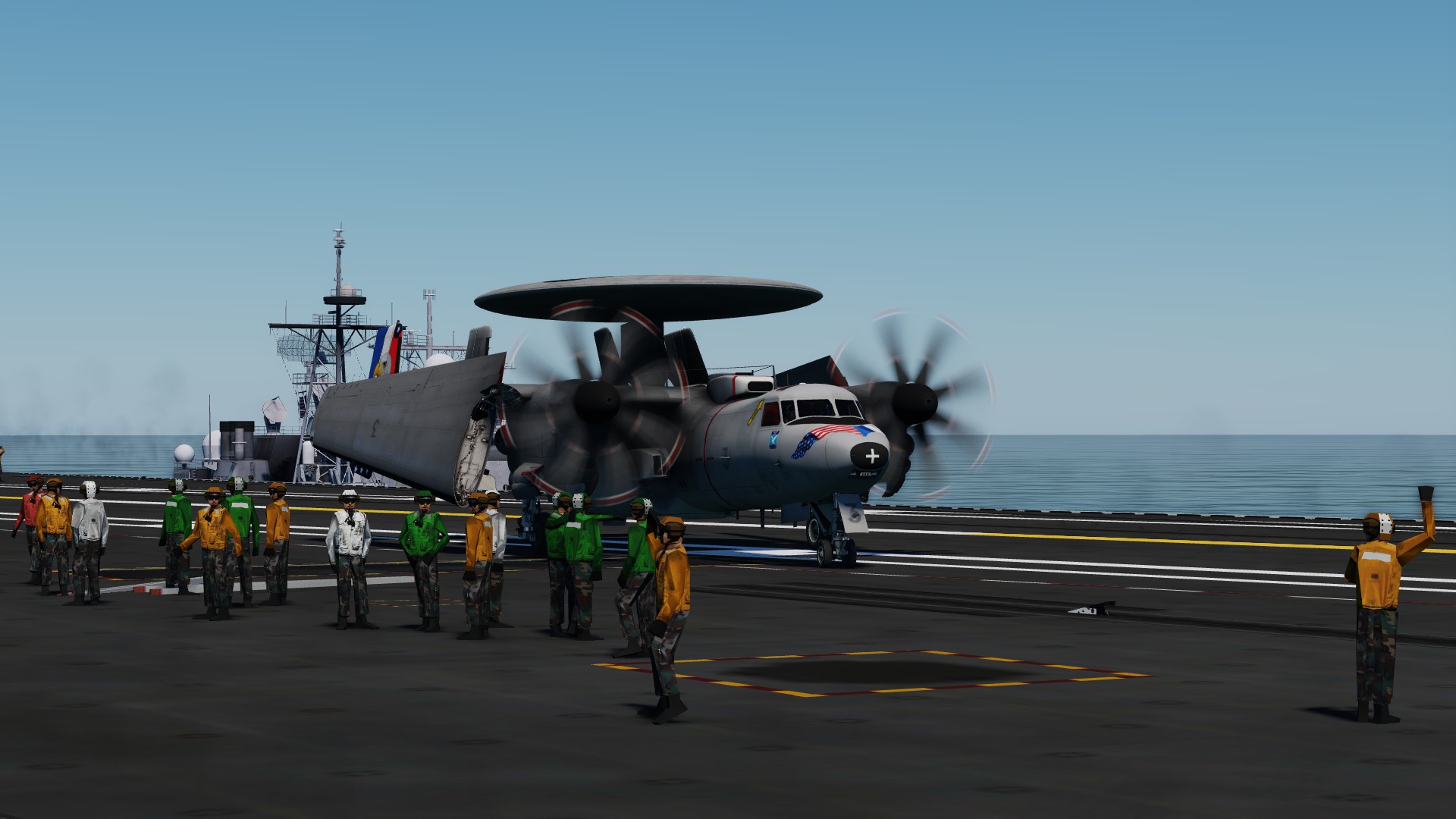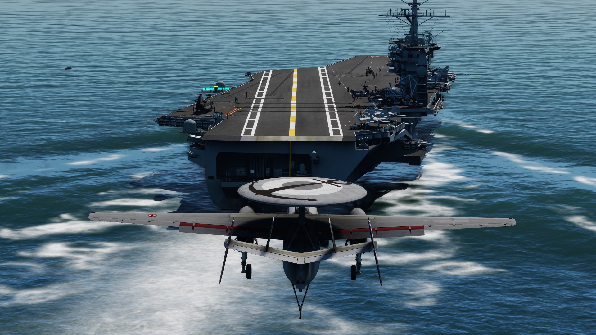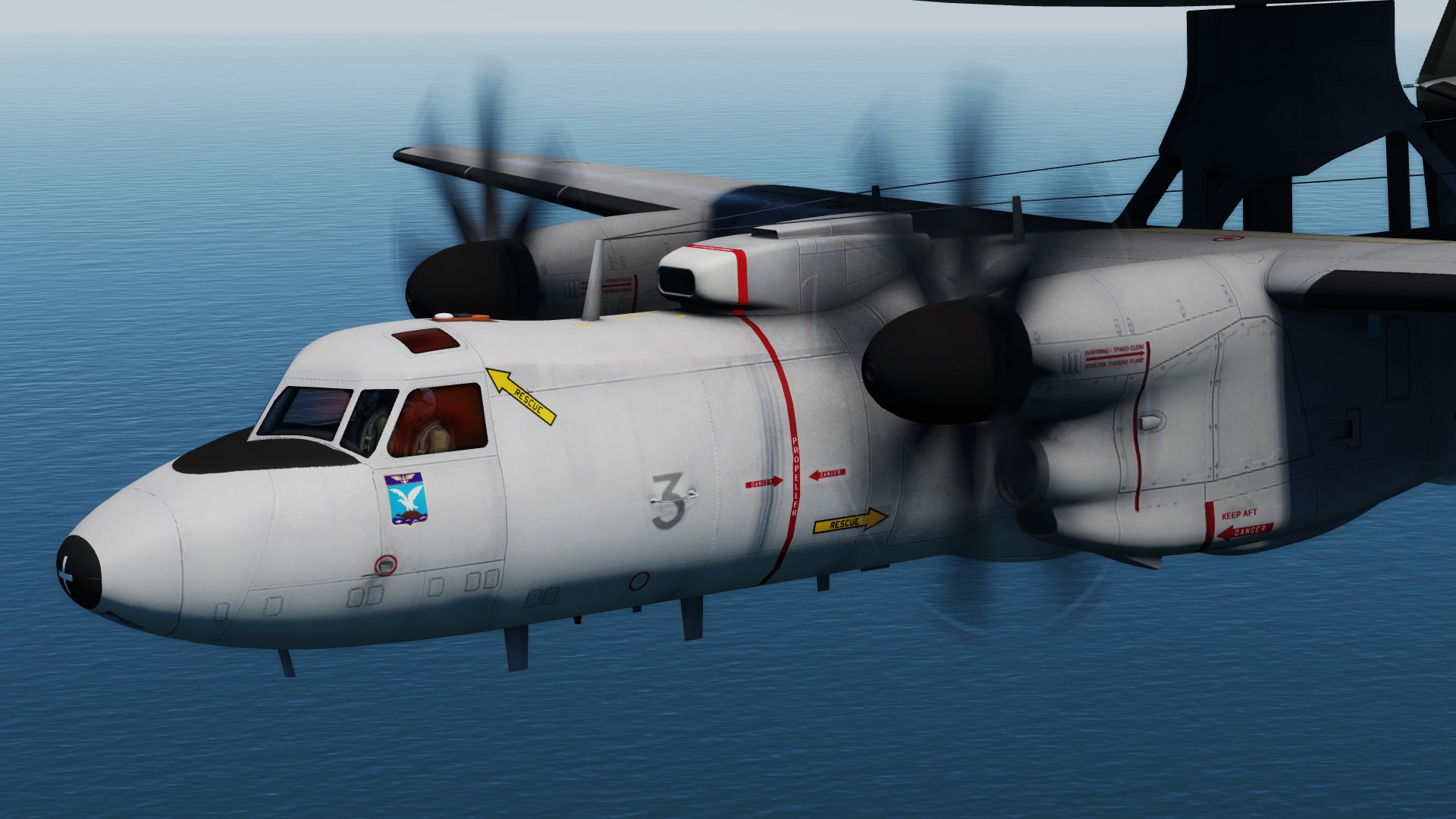 Special (real) decoration worn by French Navy Hawkeye in April May 2018: For the 100 years of the Flotille 4F, and on the occasion of the French Groupe Aéronaval to operate for two months in the US while the Charles de Gaulle carrier is under maintenance and MLU.