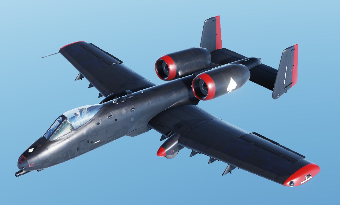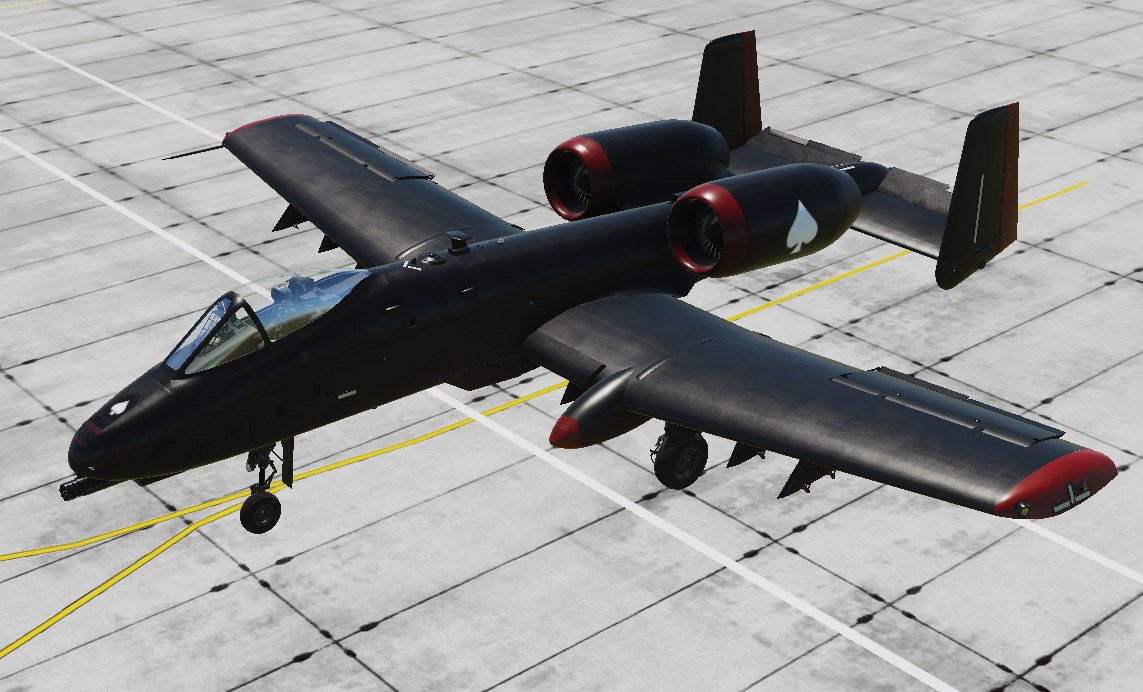 The first skin I ever created for DCS! Its a mostly black A-10 with some red accents added. The second folder included in the .zip has 4 white ace of spades added because a friend of mine wanted that version of the skin and now you can use it too!
