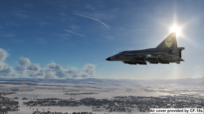 The Norrland War tells the story of the AJ 37 Viggens of F 15 Söderhamn, deployed to the North in a regional conflict between Sweden, Finland and Soviet Russia.
