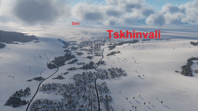 Russian forces have taken Tskhinvali and and are approaching the outskirts of Gori. Allied forces are about to meet them in an attempt to repeal their attack. Your task is to fly and remain undetected behind enemy lines and bomb their HQ in the northern suburbs of Tskhinvali. Successful elimination of their general staff will hinder their ability to coordinate their land and air forces.