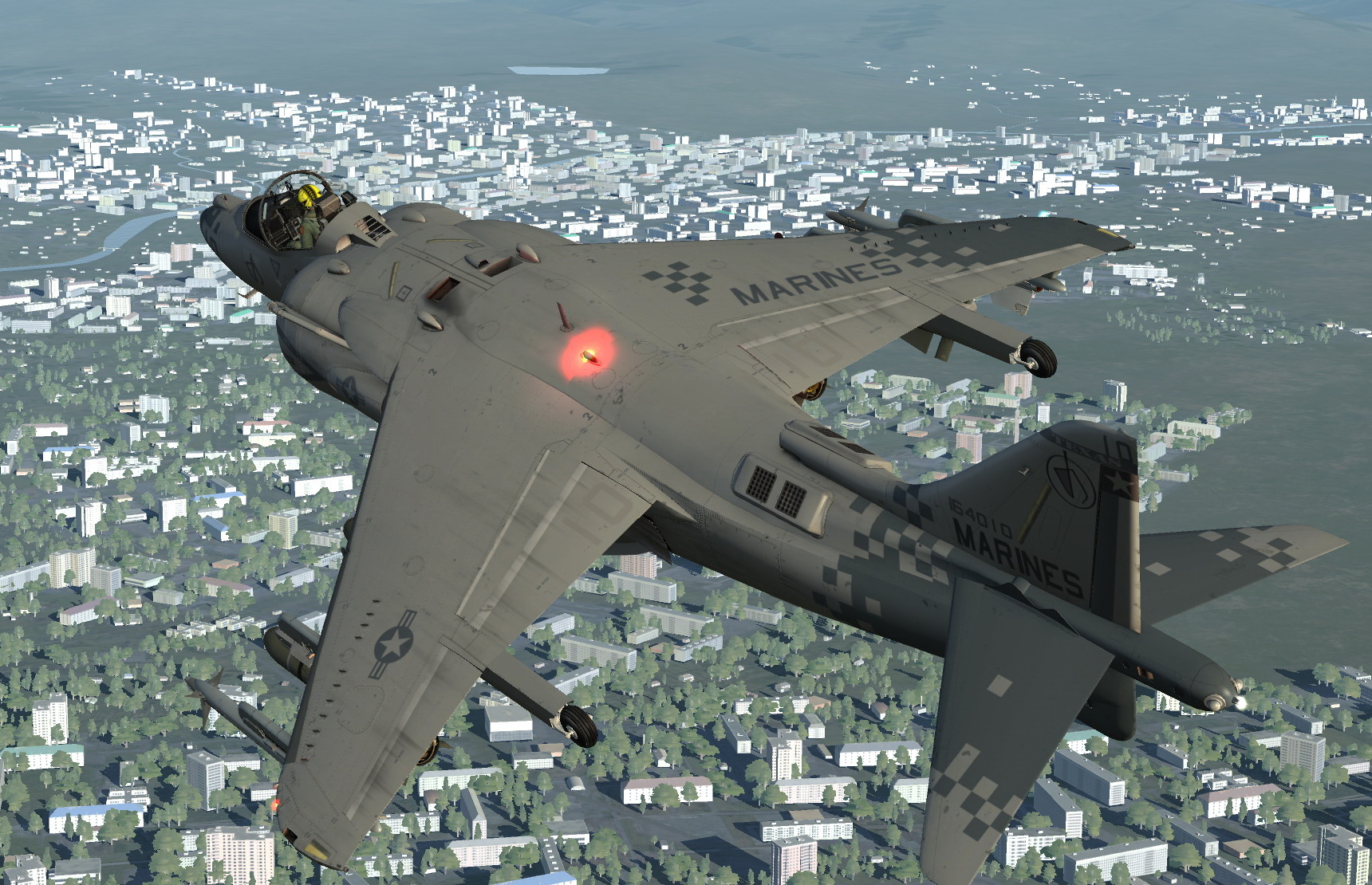 AV8s conduct SEAD for an A10 CAS package attacking armor in downtown Las Vegas. F18s provide CAP.<br />