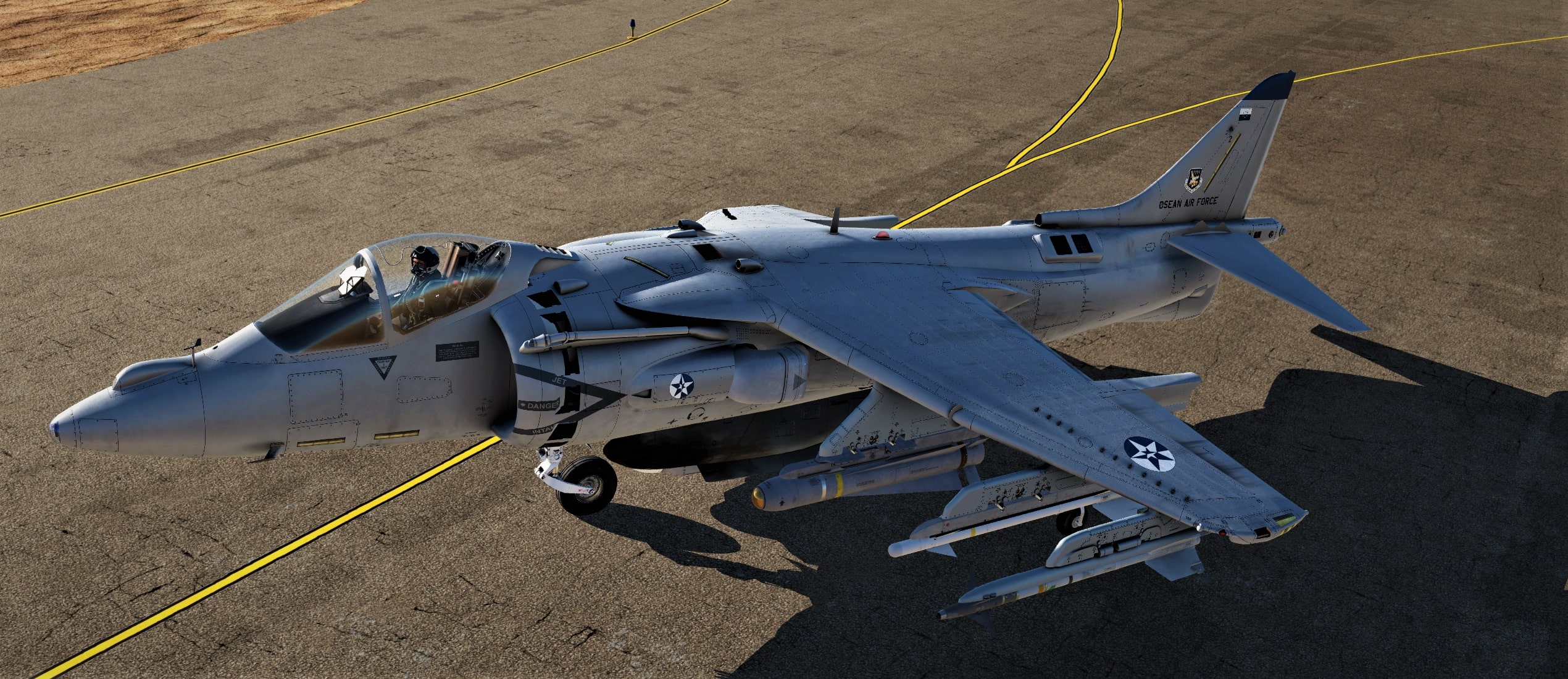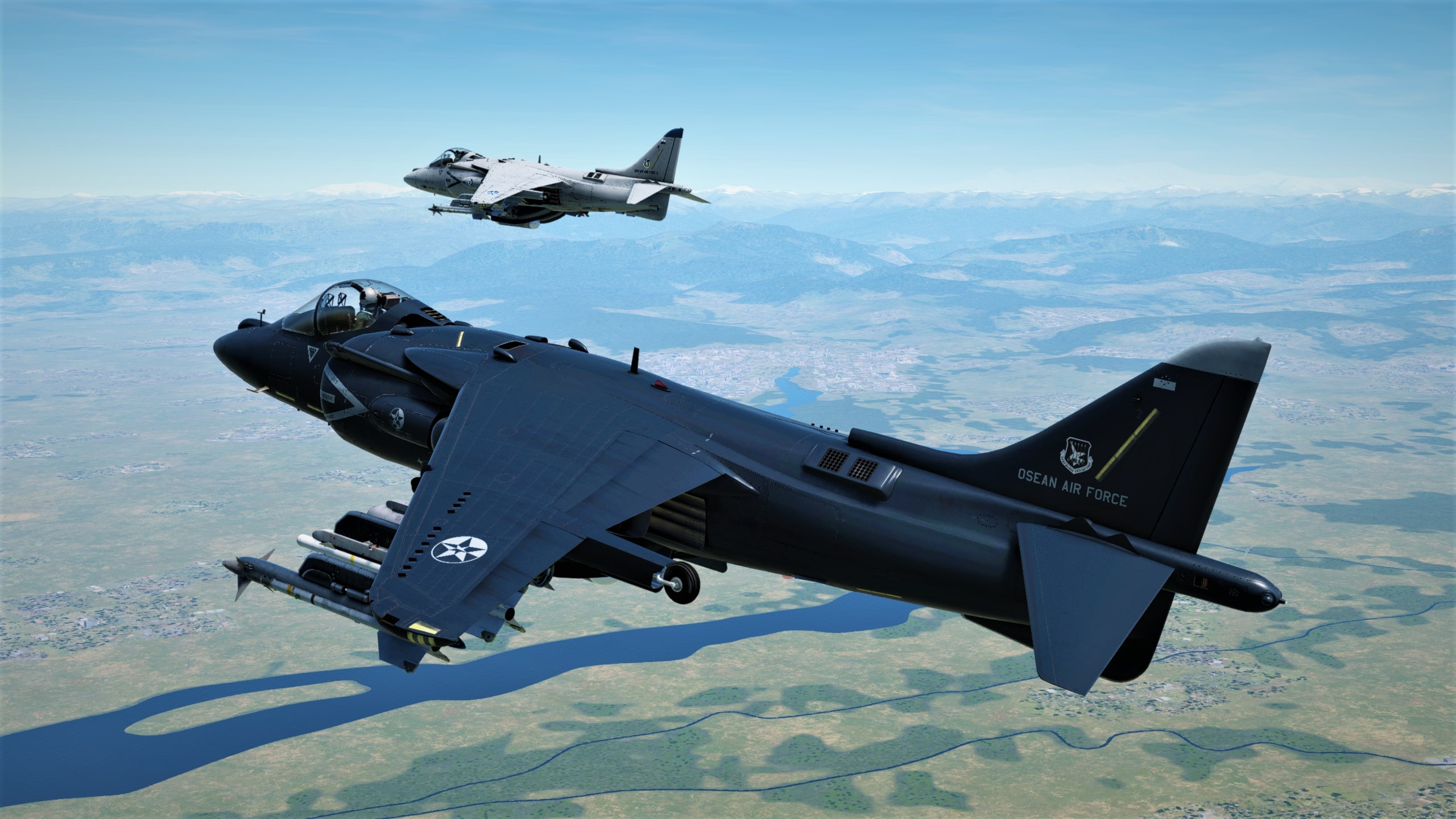 An AV-8B Ace Combat livery with a standard maritime force look. Just a general two color Harrier.. If there's any sort of issue with the livery please let me know and ill fix it ASAP! Install: drop the files from the ZIP into DCSWorld\CoreMods\aircraft\AV8BNA\Liveries\AV8BNA It'll show up as "Ace Combat - Two Tone OMDF" in the livery selection. Osean Maritime Defense Force Emblem courtesy of Pepsiman / Mace 2 <br />