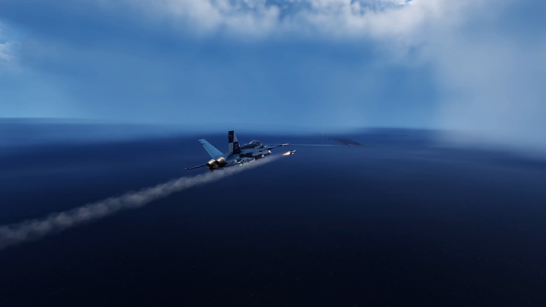 A 2 sequentials activities mission. Surrounded by the immersion of a carrier group in motion, its own tanker, awacs and rescue chopper moving around endlessly, you will take off from the carrier and execute anti-ship warfare.