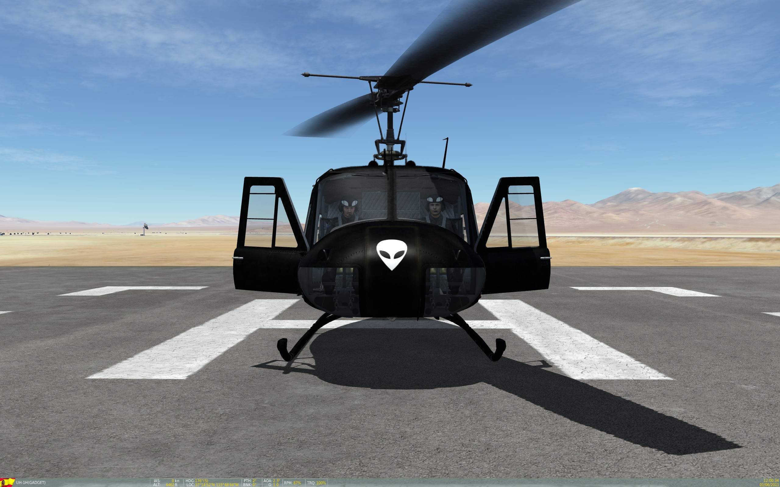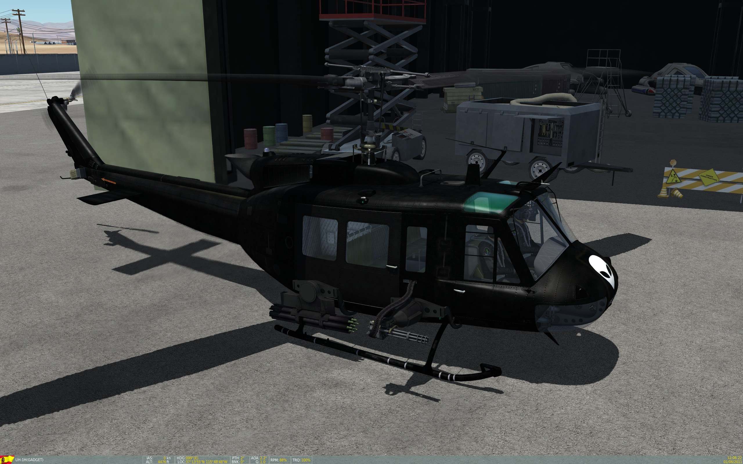 Skin representing a ficticious livery of an UH-1H belonging to a non gubernamental agency based at Groom Lake AFB.