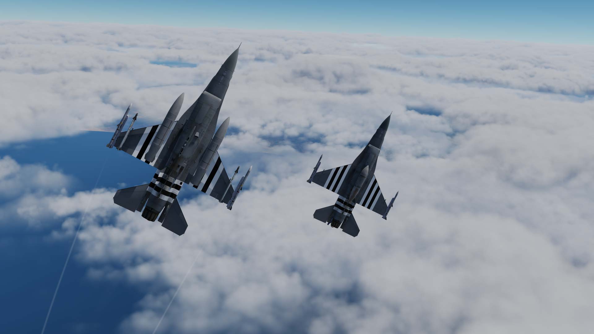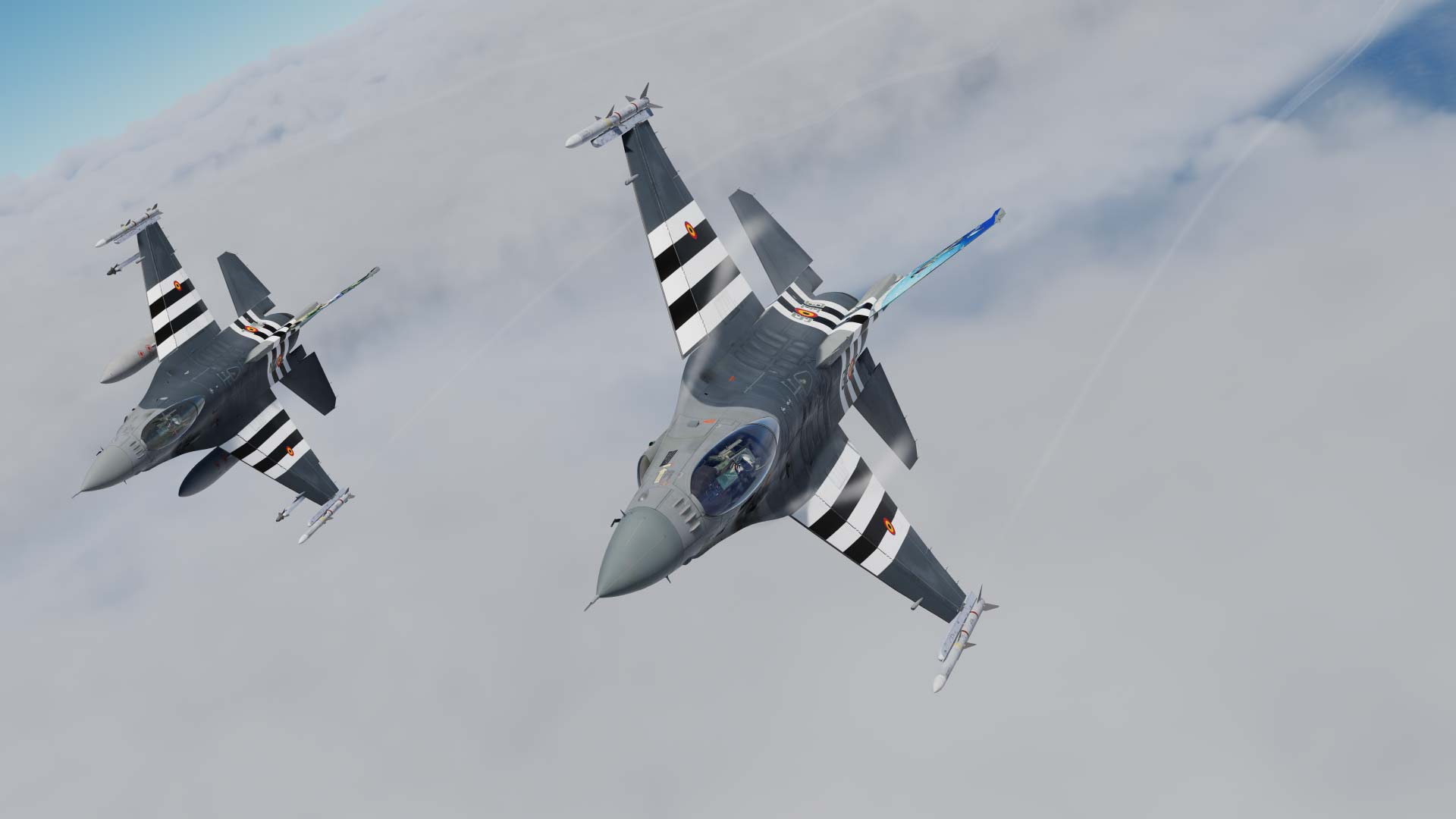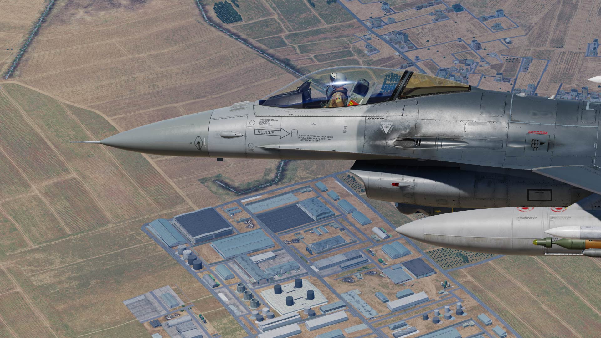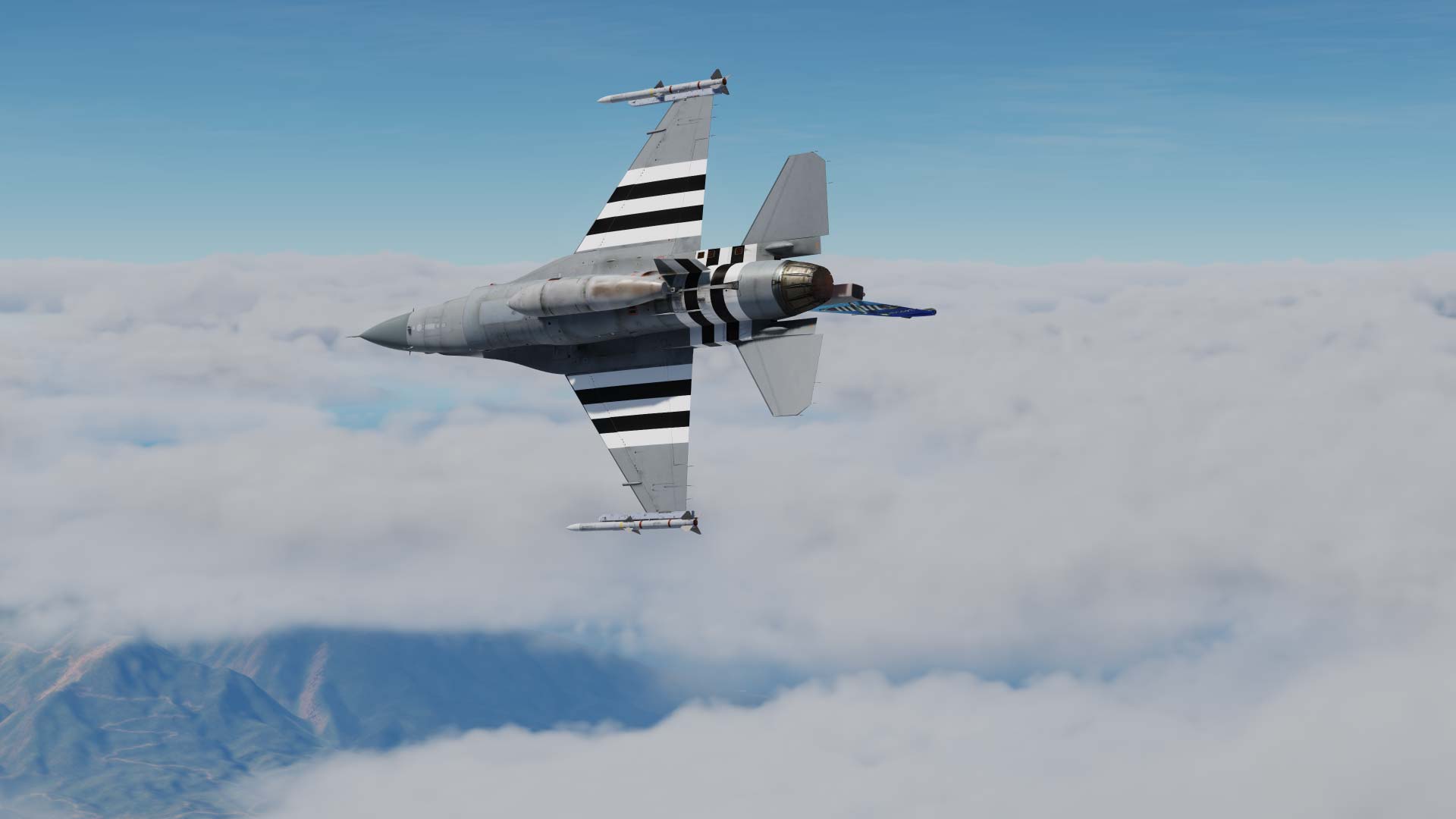 This is a photoreal recreation of the Belgian Air Force F-16Mlu FA-95 as it is seen flying around the skies these days. The stenciling and weathering is about as accurate as it will get, there's reinforcement plates,  custom 300 and 370 gallon fuel tanks and a PW-100 like nozzle! A desert flightsuit  for the pilot and tigertanks are included.