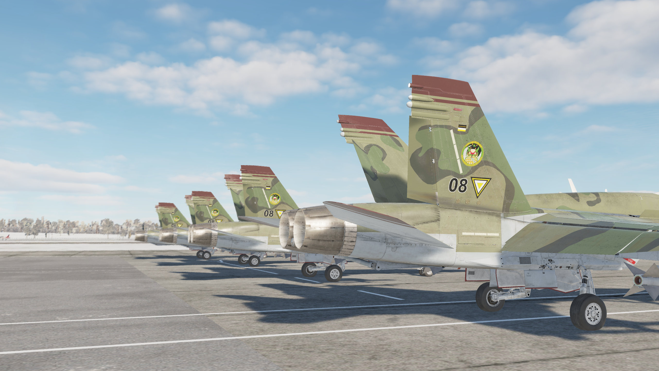 Fictional Ace Combat Zero Belkan Air Force 10th Air Division 8th Tactical Fighter Squadron "Grun" livery for the F/A-18C.