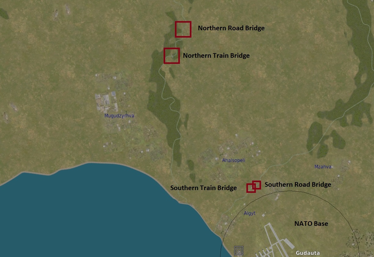 We have a plan to stop the invasion cold. The column will have to cross 2 bridges en route to our base. If we can take out these bridges while the column is between them, we think they'll be trapped and paralyzed near the village of Mugudzyrhva. Then the Georgian air force can swoop in and strike.