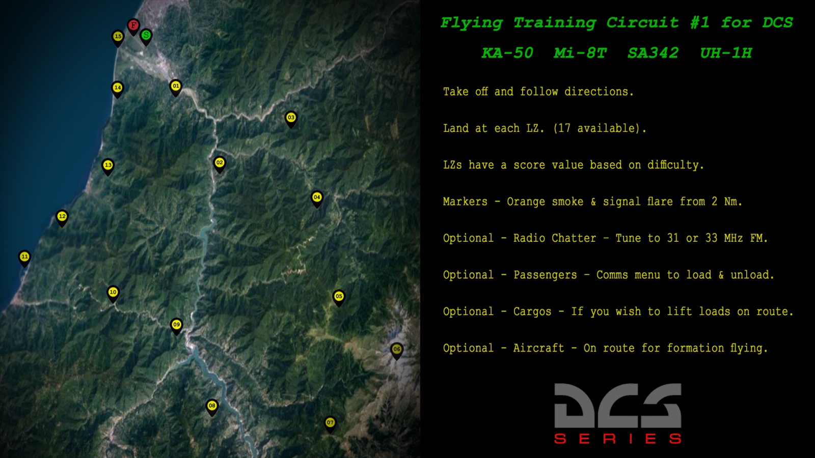 Flying Training with HLS / Cargos / Passengers / Formation.  For KA-50 - MI-8T - SA342 - UH-1H