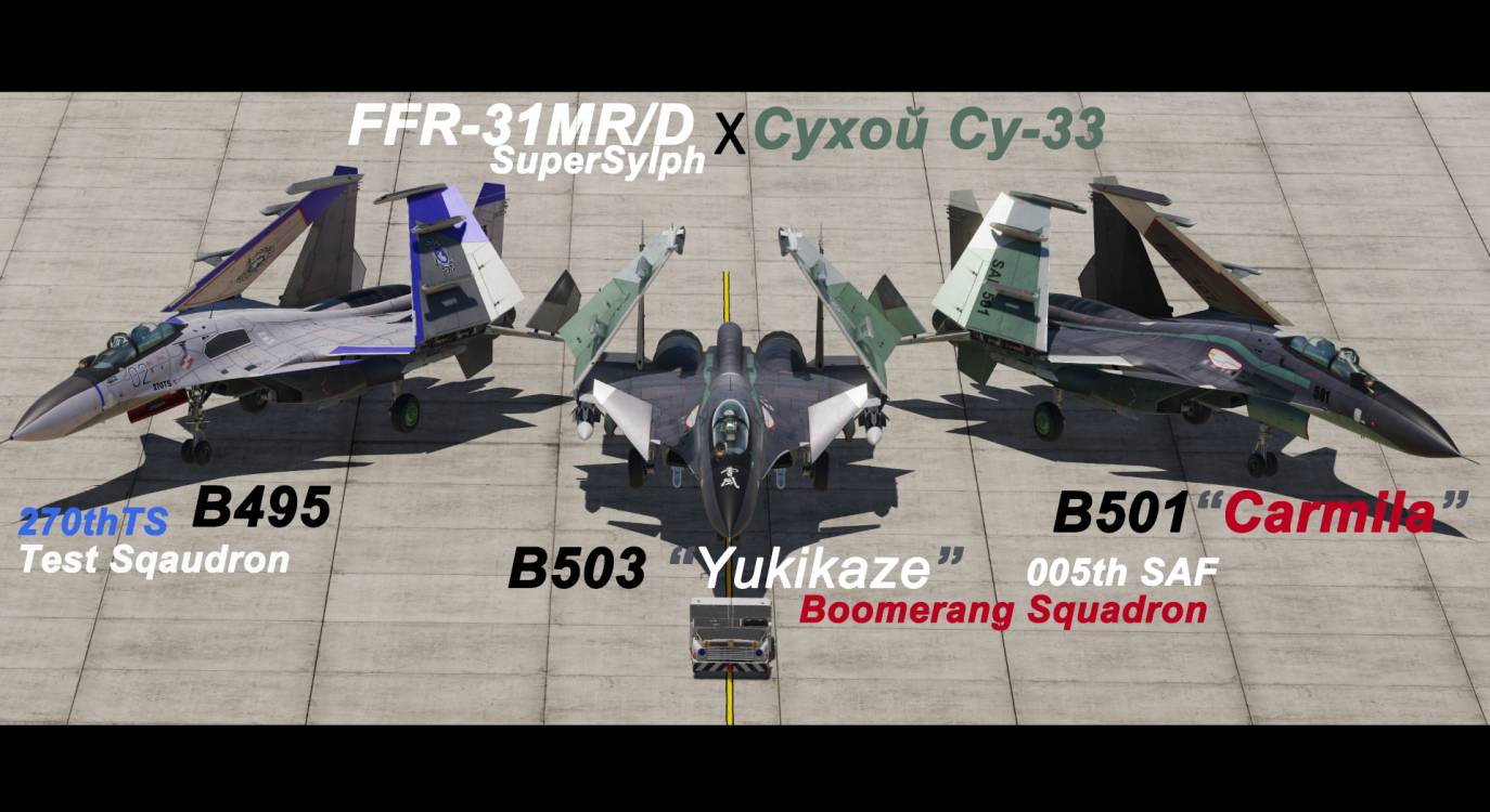 Fictional liveries based on the FFR-31MR "Super Sylph" of 005th SAF "Boomerang Squadron" and 270th TS "Test Squadron" from the animation "Battle Fairy Yukikaze".
