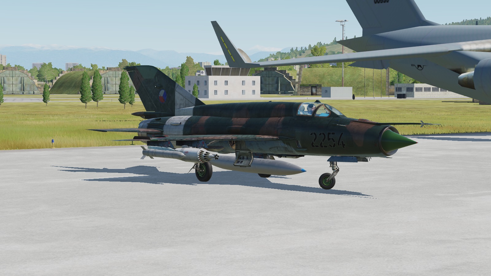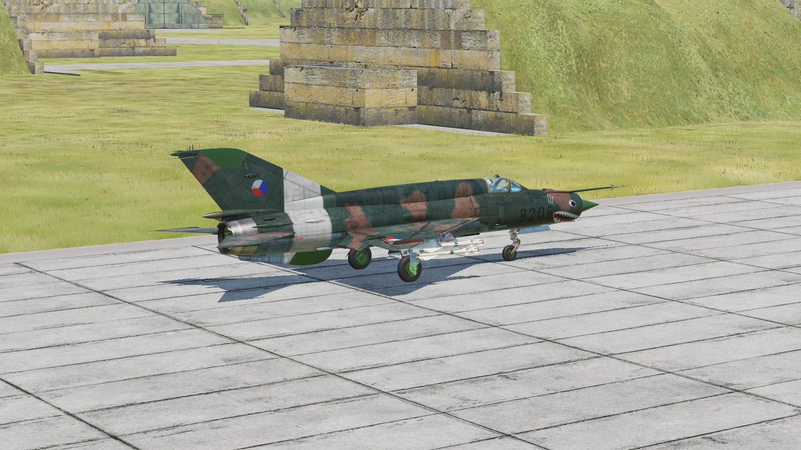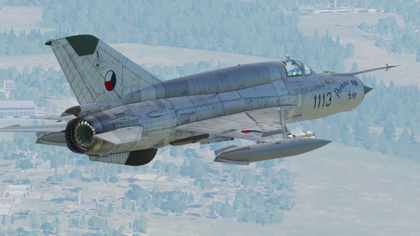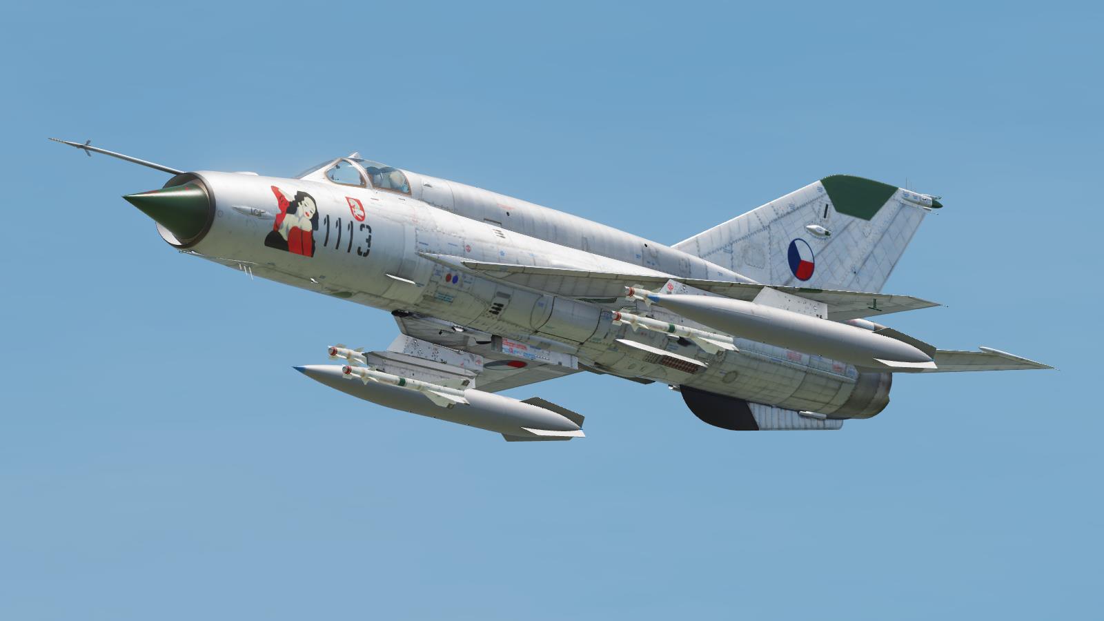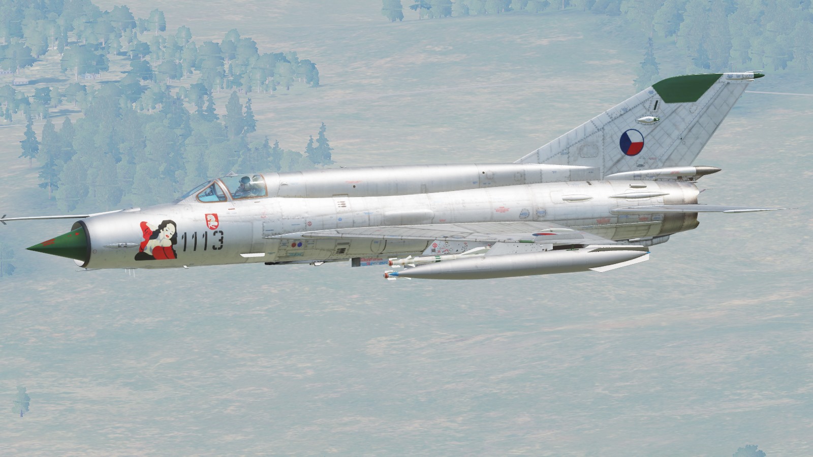 Mig-21MF, trupové zbarvení podle Migu trup, číslo 8208 v sestavě 2. letky. Skin má editovatelné trup, číslo v editoru DCS.