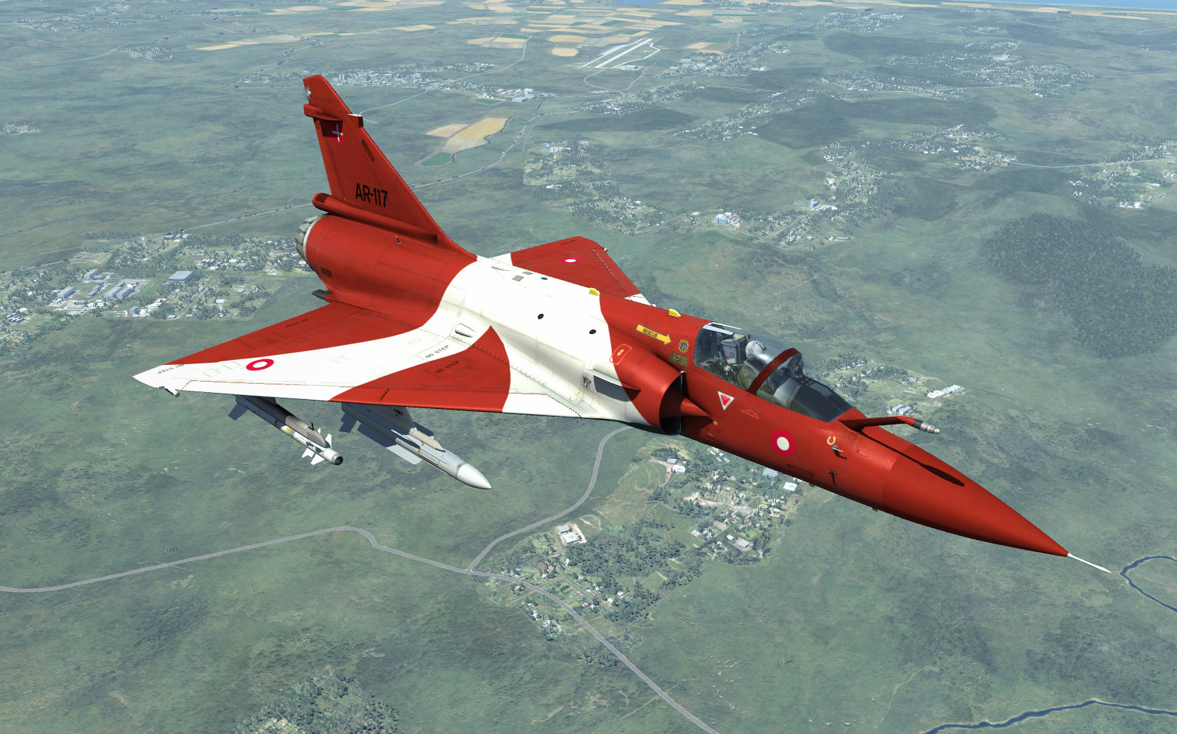 Mirage 2000 in the colours of the Royal Danish Air Force Eskadrille 725 Draken. This particular one, A-009 is exhibited at Stauning flymuseum. To install, extract to DCS World\Mods\aircraft\M-2000C\Liveries\M-2000C - you may need to create the M-2000C folder in Liveries for them to appear in-game.