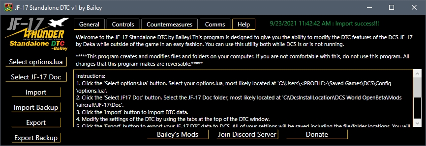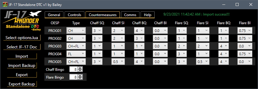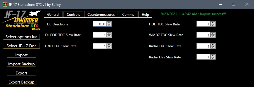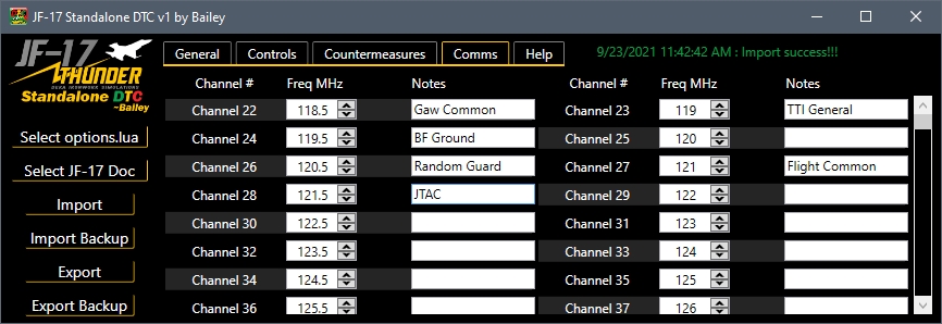 Expand the use of the JF-17 with this Standalone DTC! At any time you can access the Special Menu options and ALL of the comm radio presets that are not normally modifiable within the game itself. You have the options to Import, Export, and even Backup all of these settings. Check out the pics and check it out!