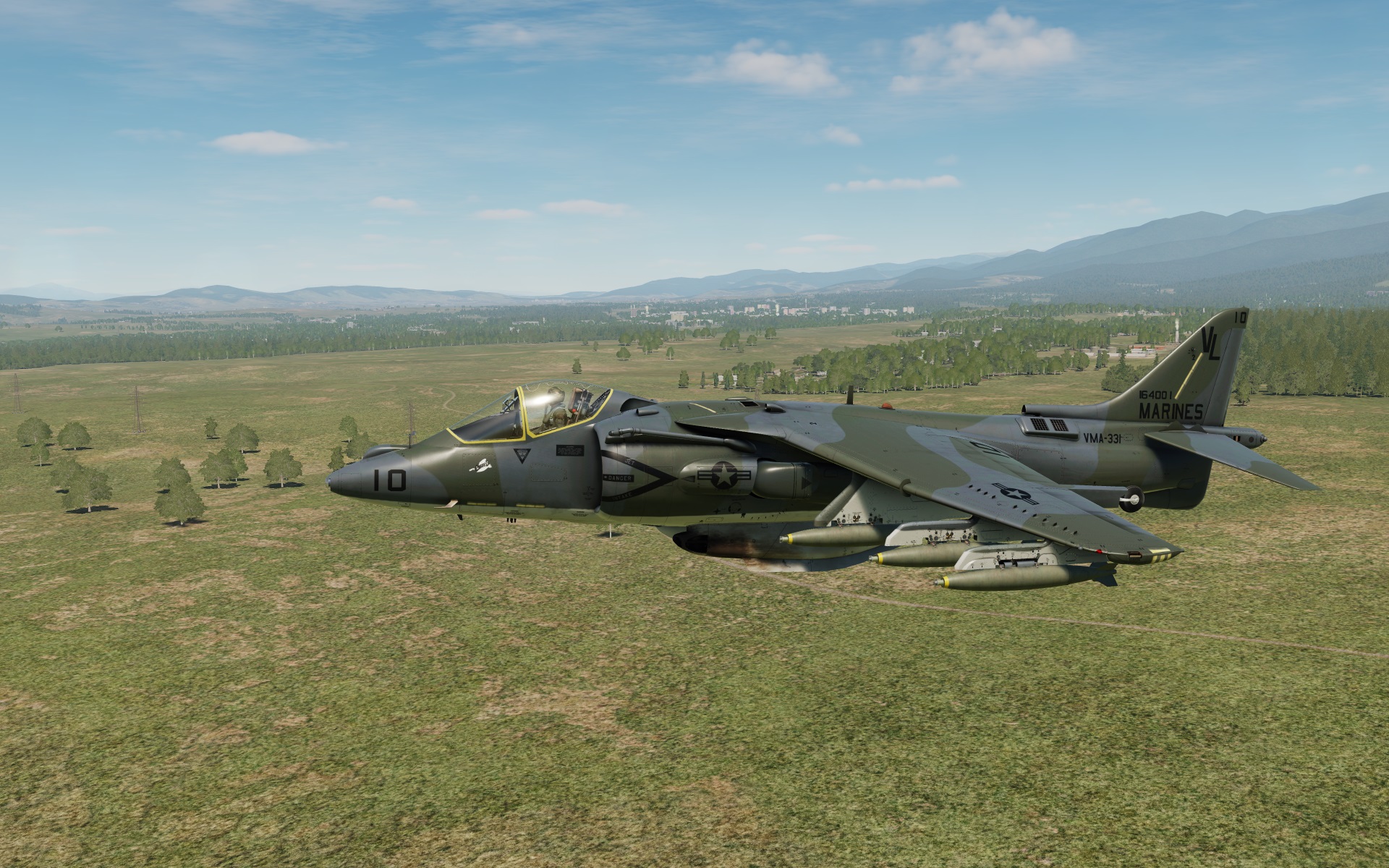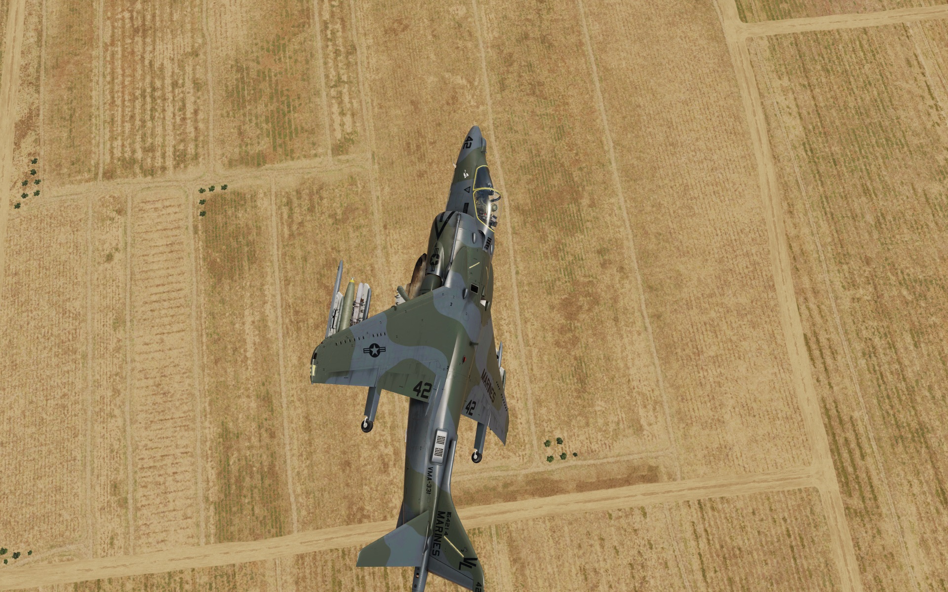 Land Camouflage Scheme as seen on early AV-8B Day Attack Harriers. This one represents a VMA-331 "Doodlebugs" bird.
