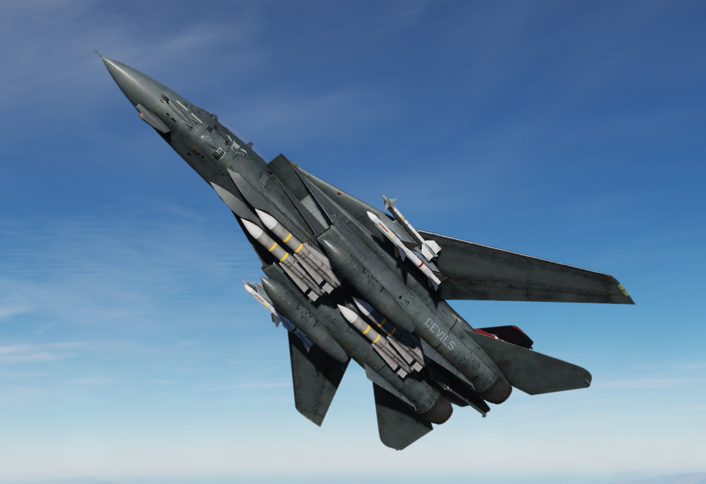 This is a F-14A and B Devils Squadron aggressor livery (used for the Red side). Its painted in Anthracite gray color and it features the standard Devils Squadron red wings and markings. Pilot and RIO have the Devil Squadron patches on their flight suits, and custom Devils red helmets. This F-14A/B is named Aurora after its deep Anthracite gray paint. This is the updated version 3.0 that has several minor fixes and F-14A added. Enjoy