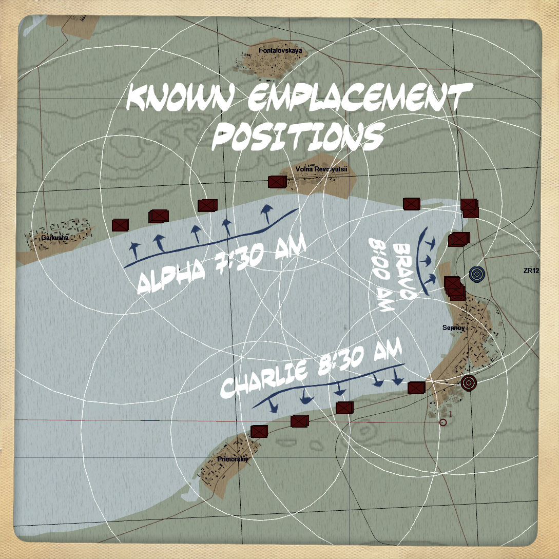 The city of Hamyshki has been suspected of weapons manufacturing and is surrounded by four Bluefor forward bases.  These bases are preparing to stage an attack on the town.