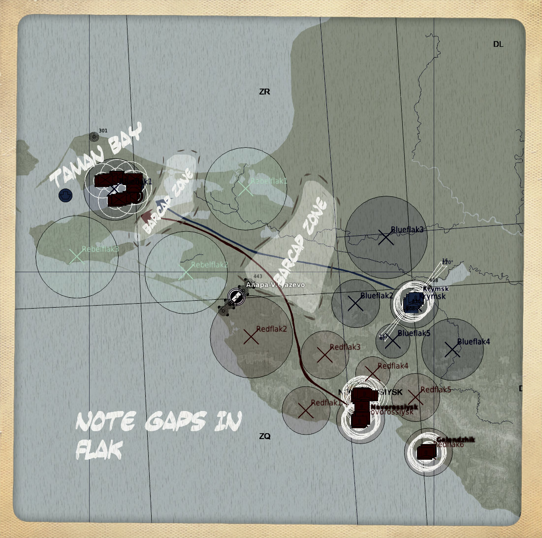 Allied forces continue to push the axis toward the sea and out of the oil assets of the Caucuses. To take advantage of the current fog bank, an allied  beach landing is underway in the Bay of Taman to try and bring flanking forces through poorly controlled rebel territories from the NorthWest.  If successful, a spear can be pointed at the uncontrolled base of Anapa to put pressure on the axis to the SouthEast.
