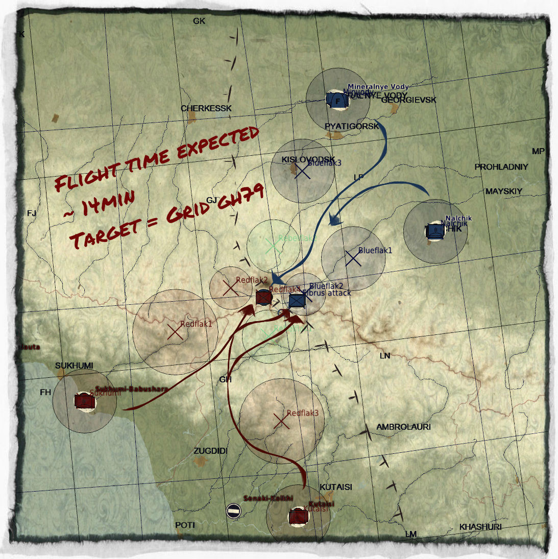 TWO OPPOSING CONVOYS ARE HEADING TOWARDS EACH OTHER.  ENEMY AIRCRAFT ARE FIGHTING TO CONTROL THE AIRSPACE ABOVE PASANAURI.  FLY FROM YOUR BASE TO SUPPORT THE CAUSE!!