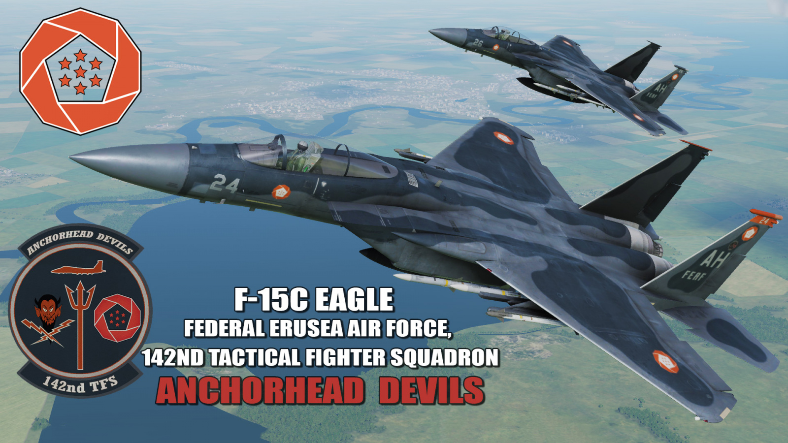 F-15C Eagle in the livery of the Federal Erusian Air Force 142nd TFS "Anchorhead Devils"