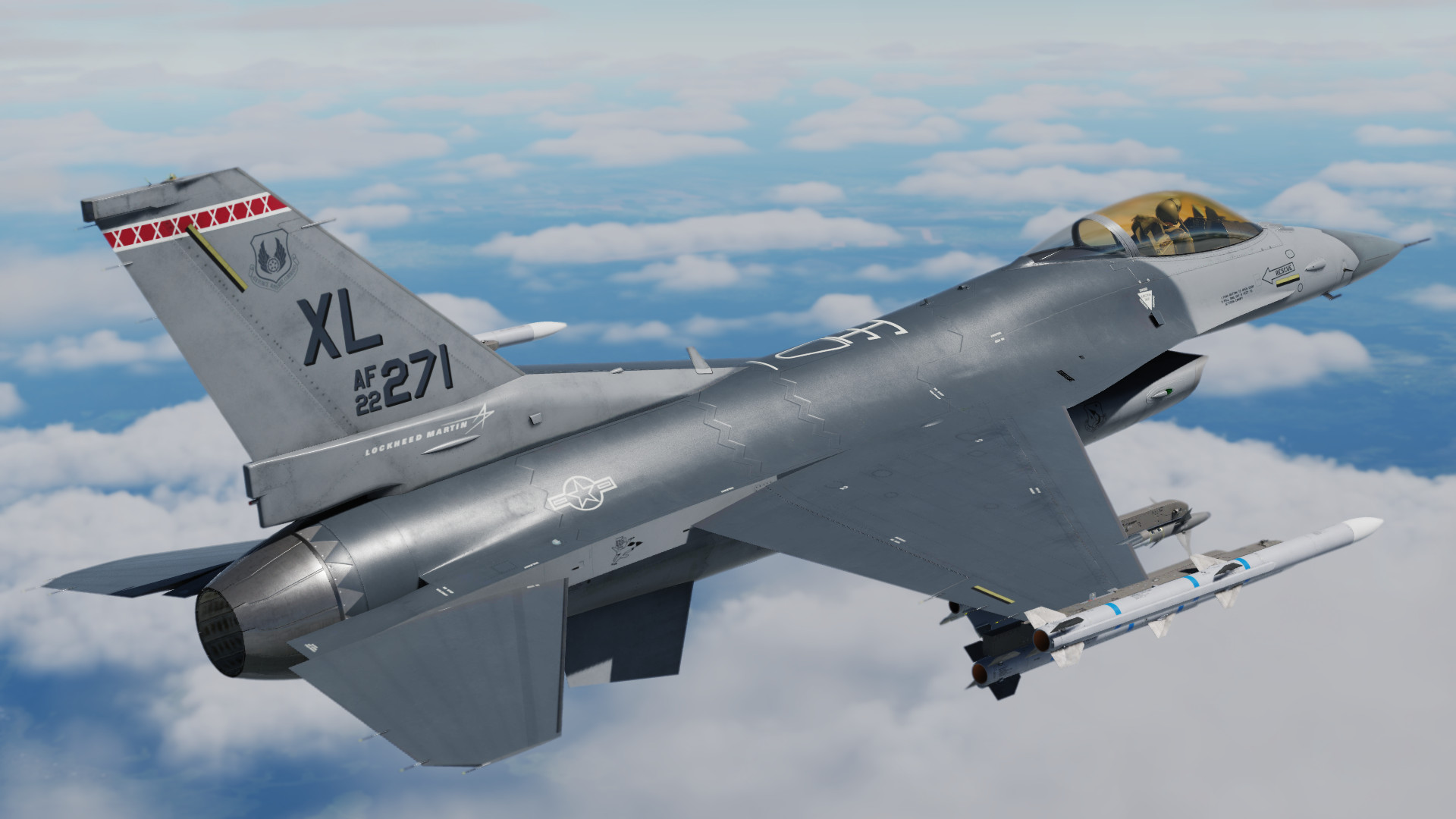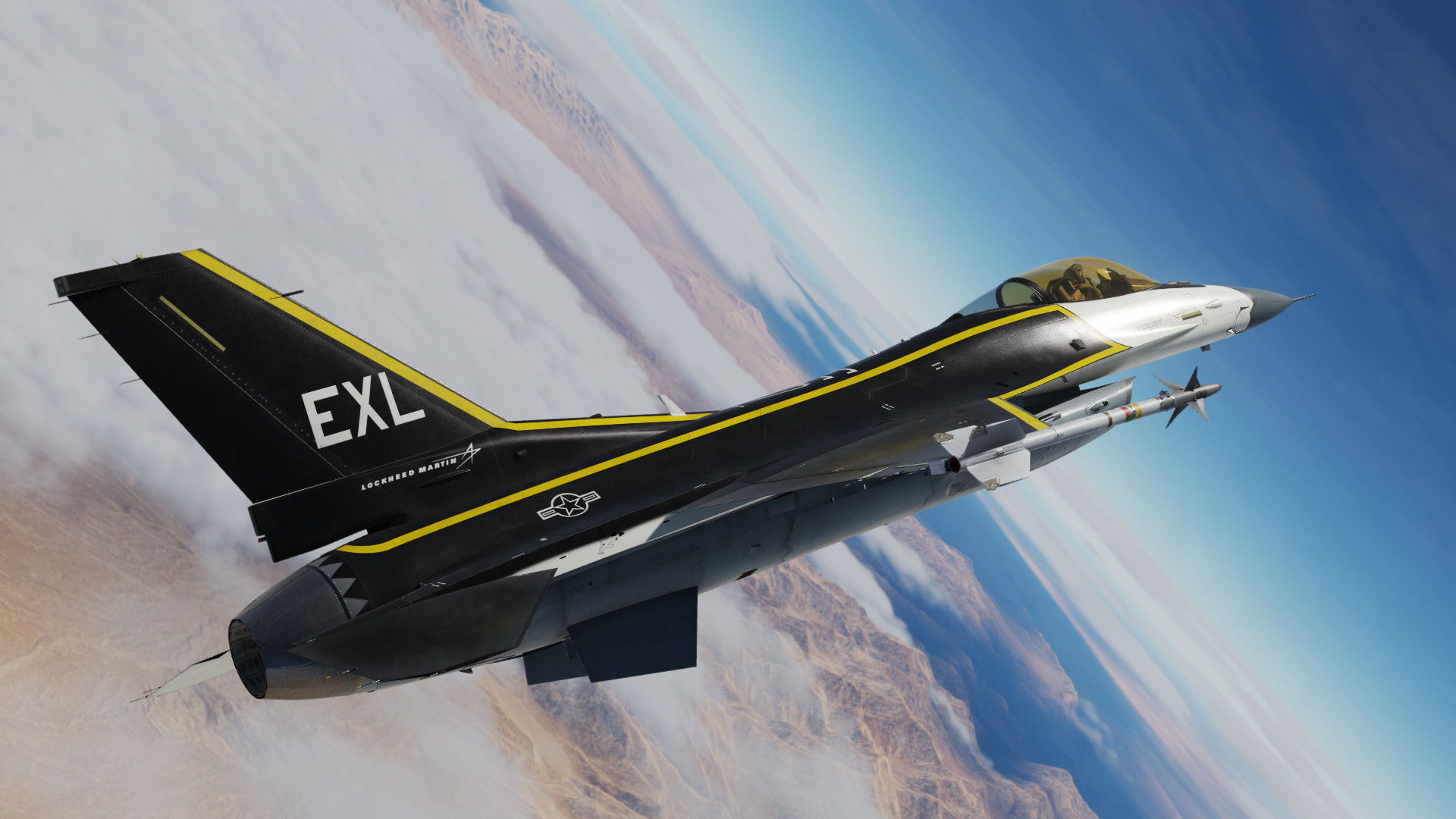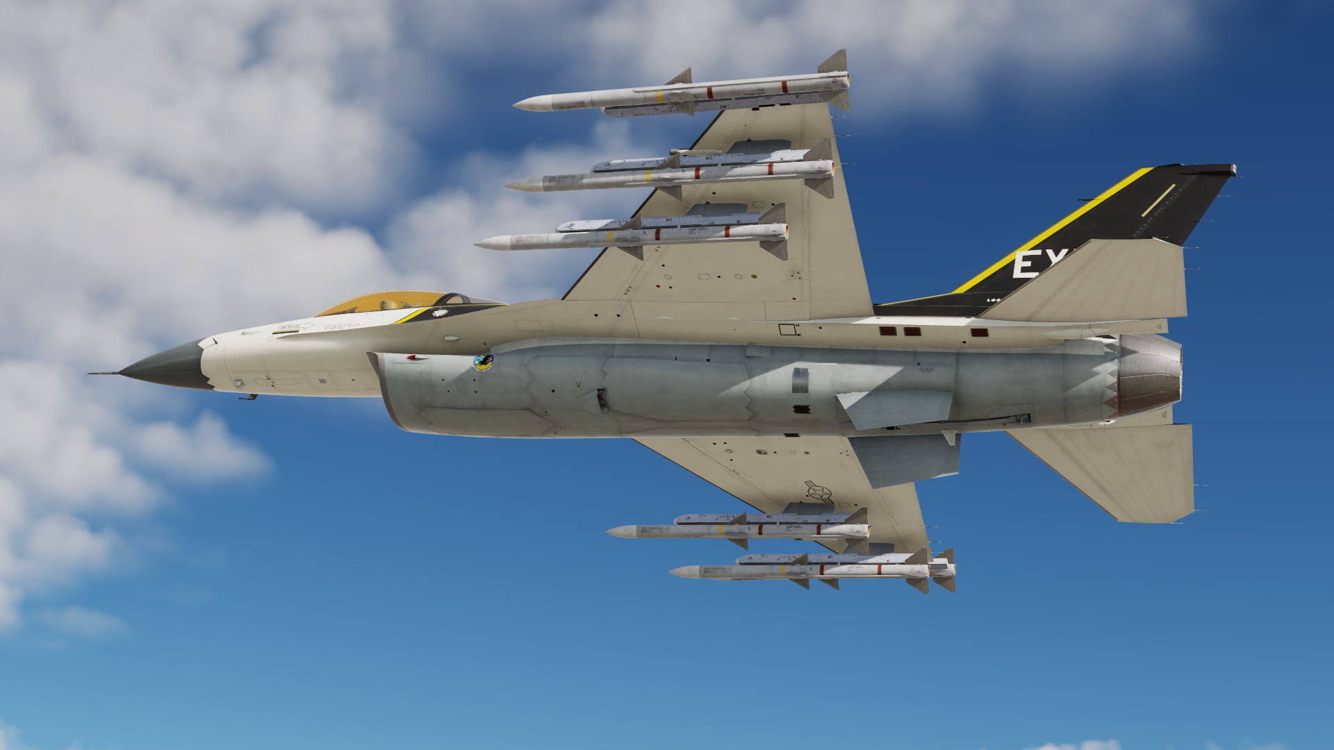 This skin/paint scheme is based on the experimental F-16XL program by NASA around 1993.