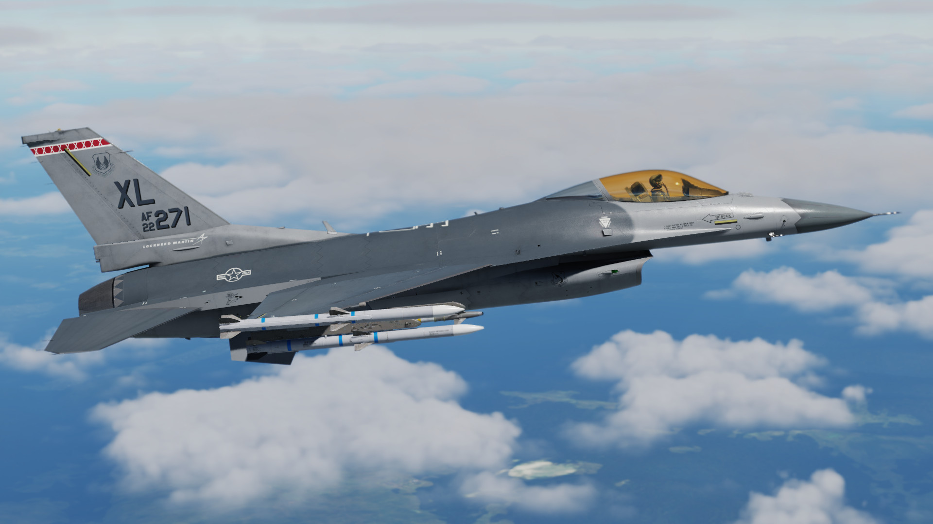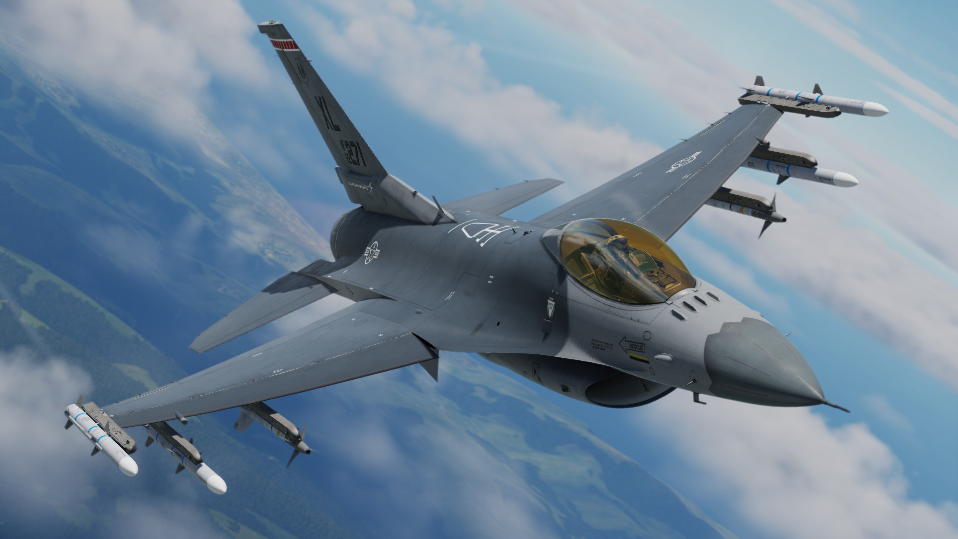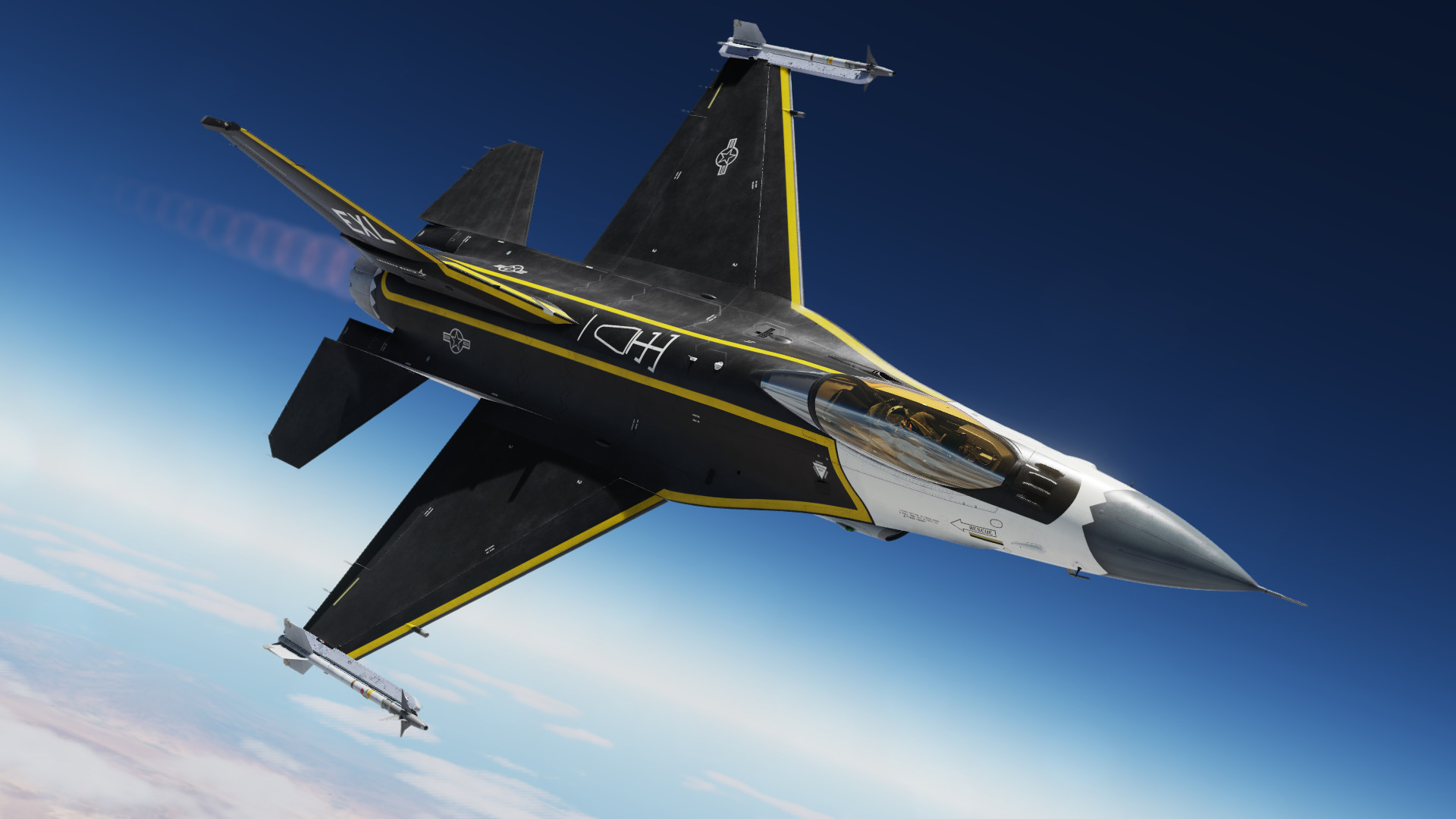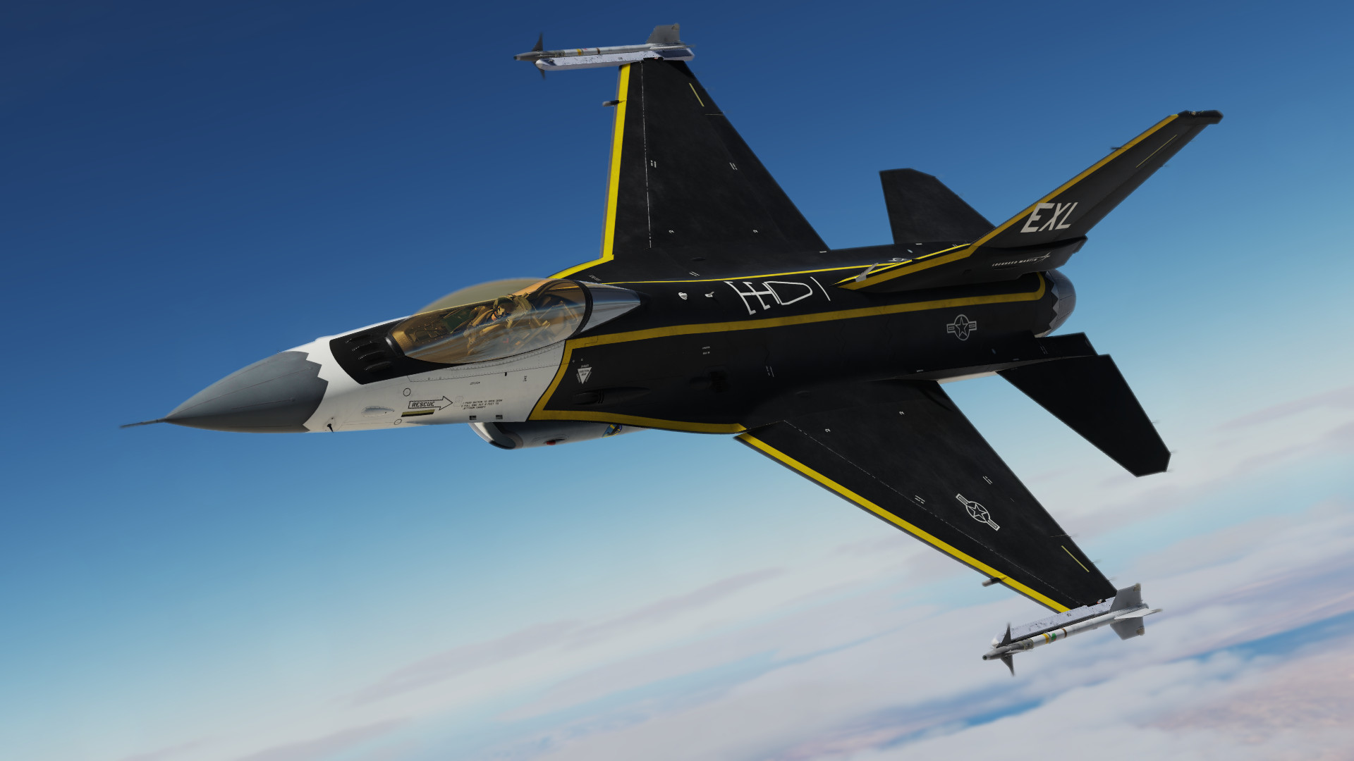 This skin/paint scheme is based on the experimental F-16XL program by NASA around 1993.