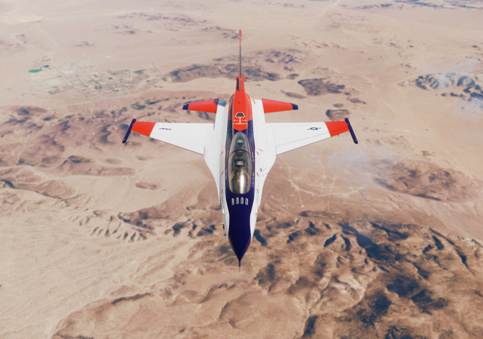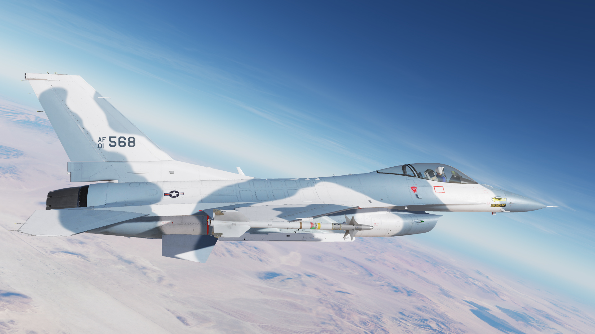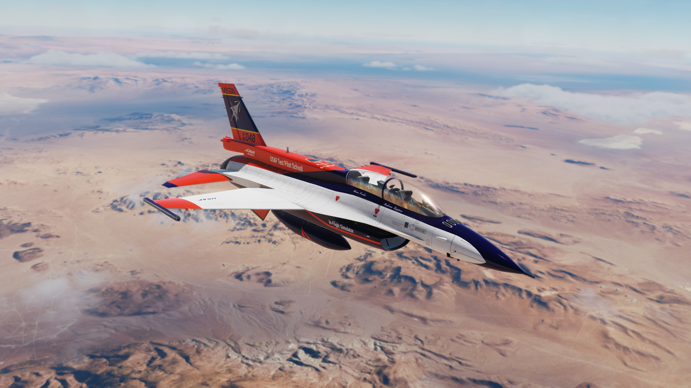 Serial number 72-1658 was the second YF-16 prototype built and flew test missions mostly at Edwards Air Force Base. It differed from it's partner YF-16 by having a blue and white camouflage scheme. This aircraft was also evaluated in 1975 by the U.S. Navy as a potential new Naval fighter. It lived an 8 year life as a test aircraft with the United States Airforce before being dropped from the inventory in 1980. It spent the next period of it's life being used as a test and instructional aircraft in Rome, New York, before finally being shipped back "home" to Fort Worth in 2020. The blue flight suit is an homage to the late Philip F. Oestricher and the other original F-16 test pilots. This aircraft is presently being restored to museum quality.