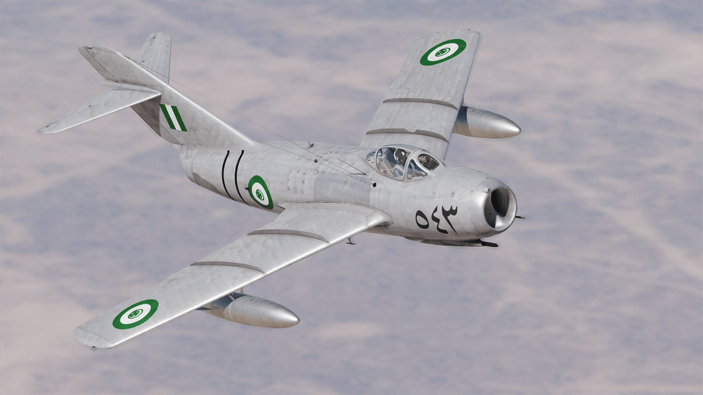 this is a non-fictional livery of the MiG-15s operated by the Egyptian Air Force in the Suez crisis prior to the formation of the UAR and the change of roundel.