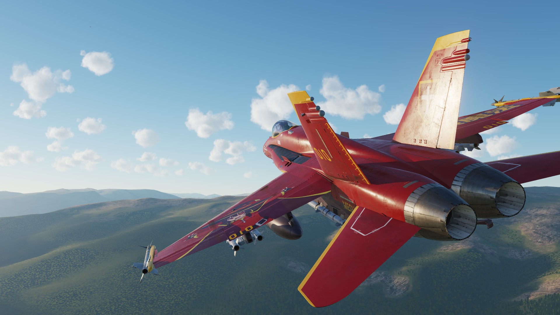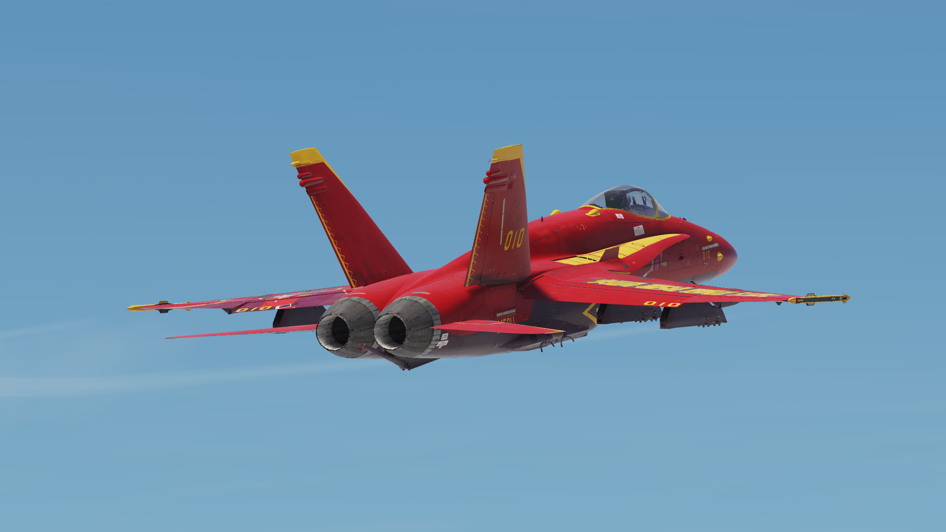 A tad updated version of skin I made like 2 years ago or something like that. I didn't like some of the decisions I made there, and some of the details I missed so I went ahead and fixed it up here and there. Most notable is the roughness map I had no clue how to apply last time around, this time I went ahead and borrowed it from the Blue Angels livery.