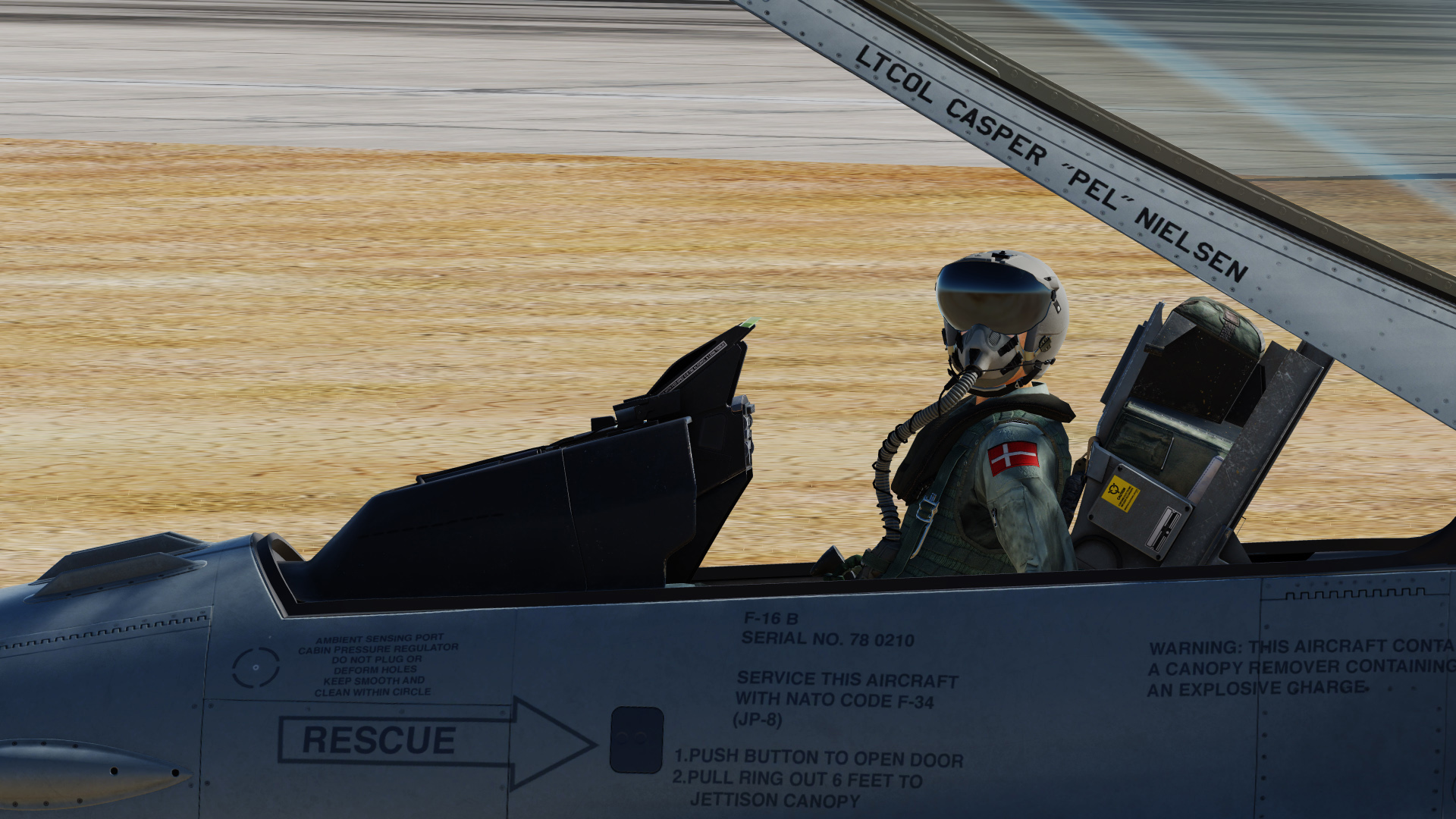 As part of the F-35 Lightning II Integrated Test Force, Denmark has contributed with an F-16BM Fighting Falcon and the renowned testpilot LtCol Casper ‘PEL’ Nielsen and maintenance technicians, flying as a chase plane out of 461st FLTS Edwards Air Force Base, California from 2008-2016.