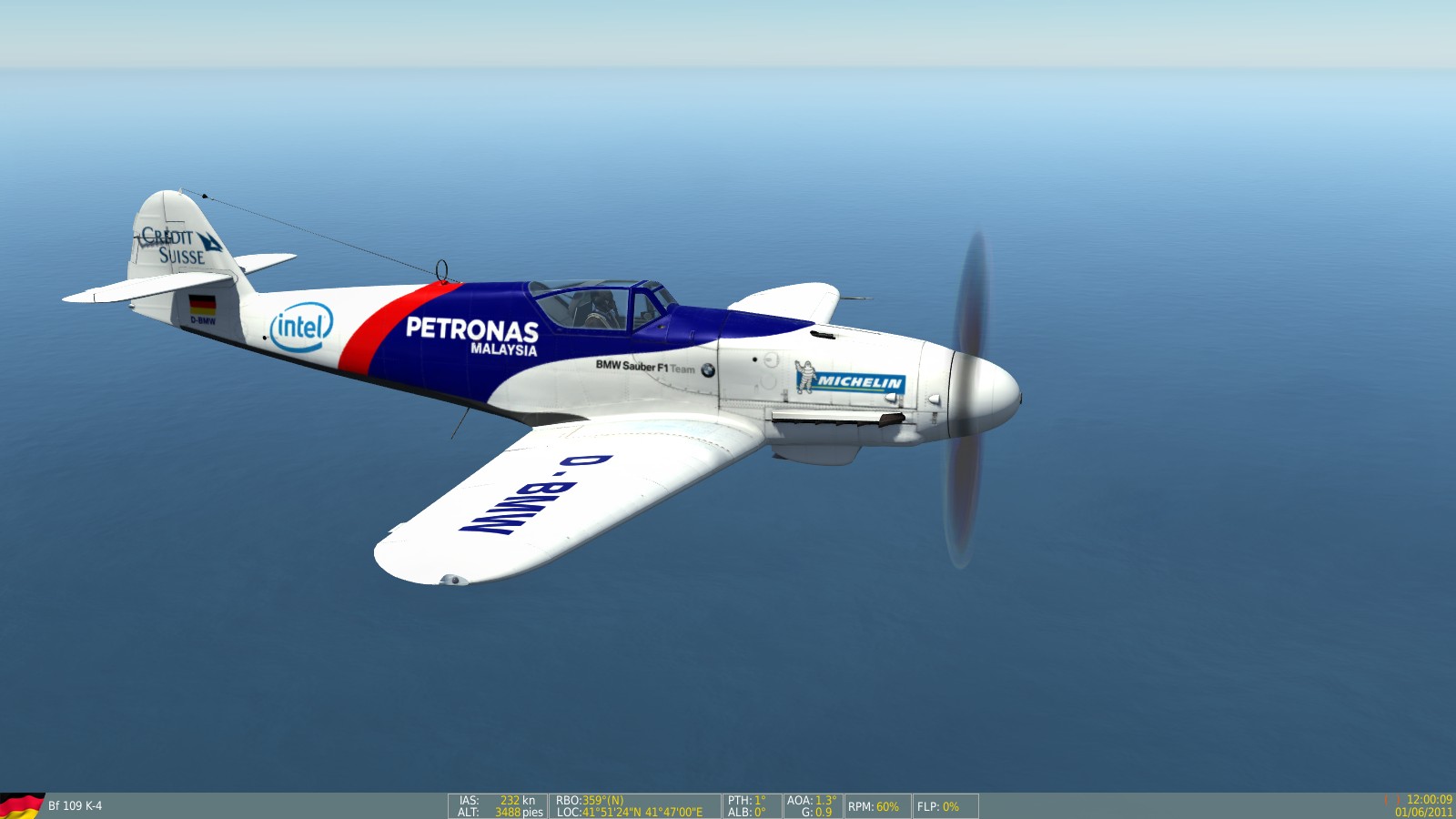 A fictional skin for the Bf-109K-4 of the BMW Sauber F1 Team..