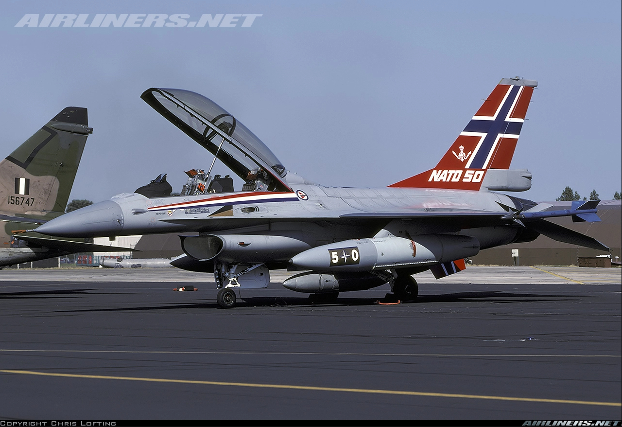 The Royal Norwegian Air Force (RNoAF) F-16BM painted for the 50th anniversary of NATO (1999)
