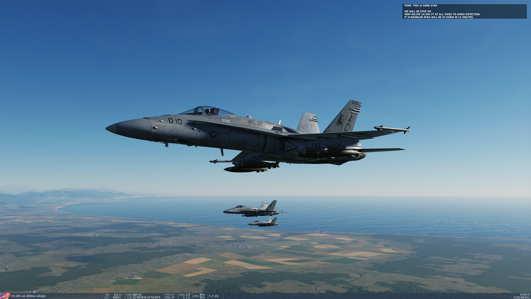 The Serpents Head is a six mission F18C Campaign. It starts in Nevada and ends in the Caucasus region, so both maps are required. (I have issued a version just in the Caucasus Map area for those of you without the Nevada Map). The campaign is story line based and follows the progress of “Ford” (yourself) and his involvement in a new conflict in the Caucasus Region. As in 2008 this is once again in the beleaguered area of Ossetia and Gori. This conflict is gathering pace at an alarming rate such that the West have sent in a multinational force to the Black Sea in the form of some ground forces but primarily a naval fleet with the USS John C Stennis at its heart. We join “Ford” during his last flight over Nevada, before he leaves first light.