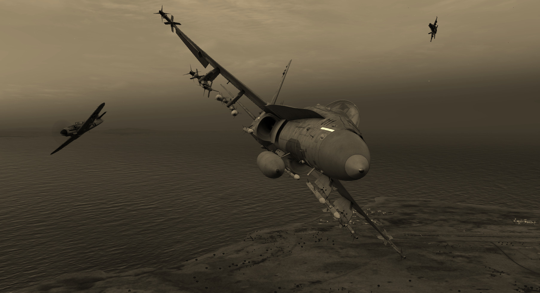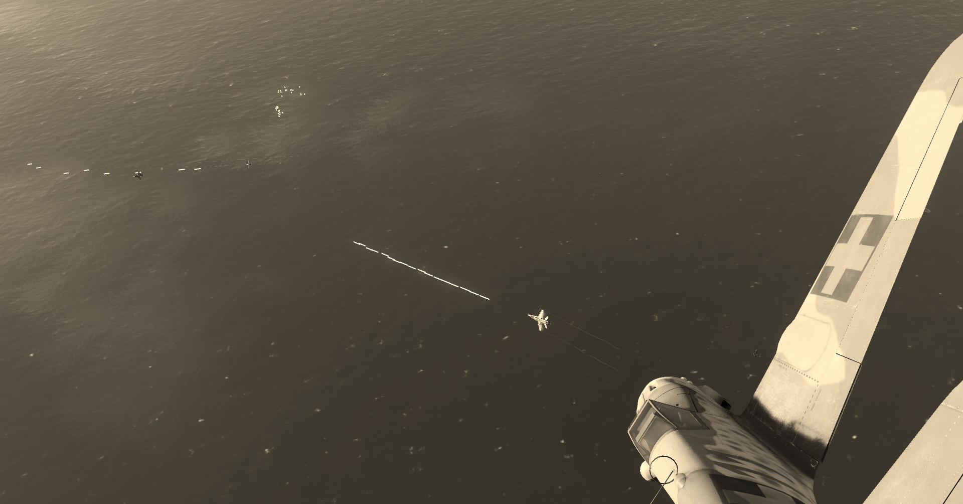 “Well now, Germans are dive-bombing a convoy out into sea...there are one, two, three, four, five, six, seven German dive-bombers - Junkers 87s - there's one going down on its target now...