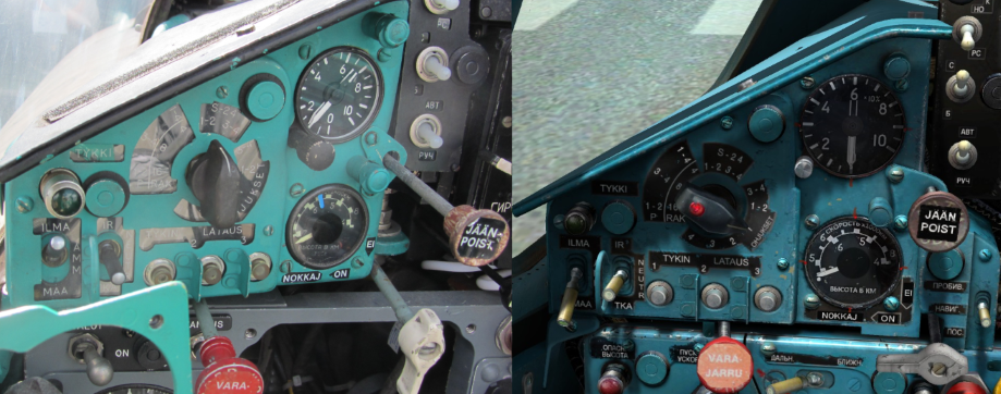 I've modified those textures to new Phase 1 MiG-21 cockpit layout, adjusted the color more turquoise, added most of the finnish texts to panels and switches to match the actual Finnish MiG.