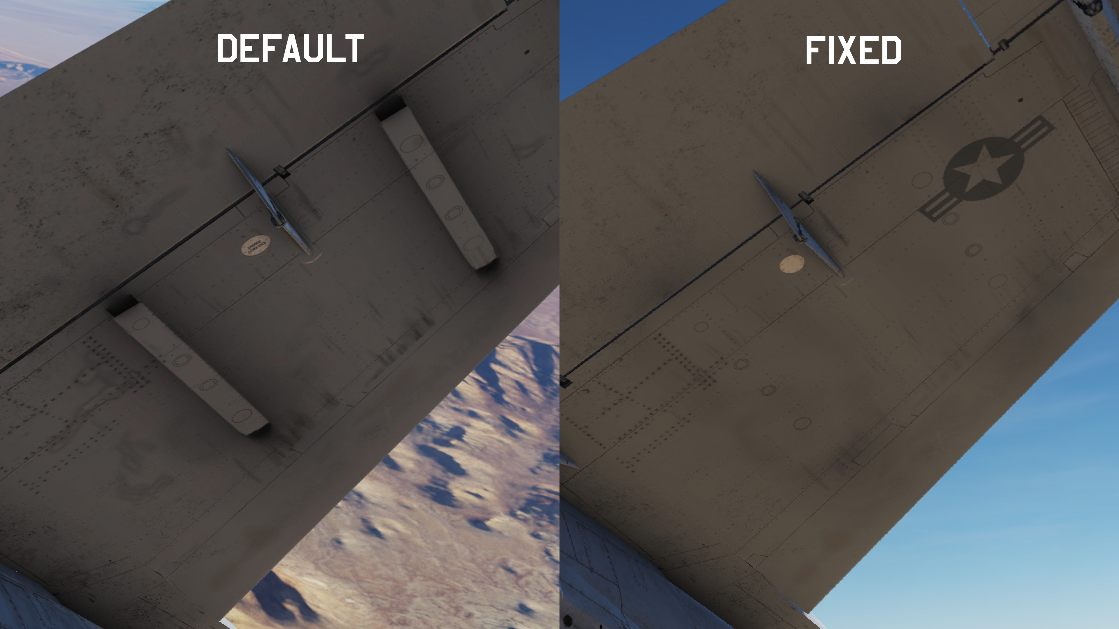 This texture replacement for the Hornet will get rid of the unattractive baked in shadows on the underside of the wings that are clearly visible and look very out of place when flying any livery without pylons. These two textures replace the default roughmet files, which means this fix will be applied to any skins you install that do not already come with their own custom roughmet texture.
